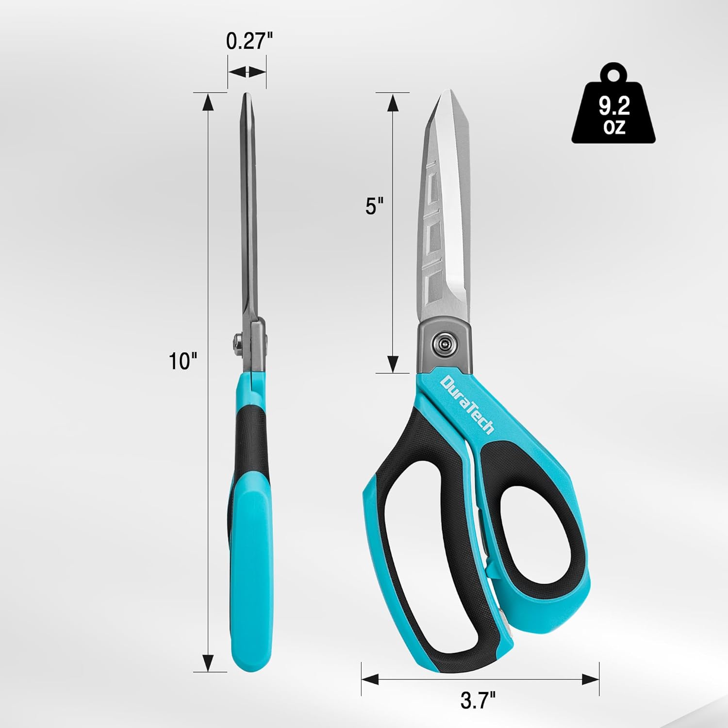 DURATECH 10" All-Purpose Heavy Duty Scissors, Stainless Steel Utility Scissors with Ergonomic Handle, Industrial Shears for Carpet, Leather, Fabric, and Household Use