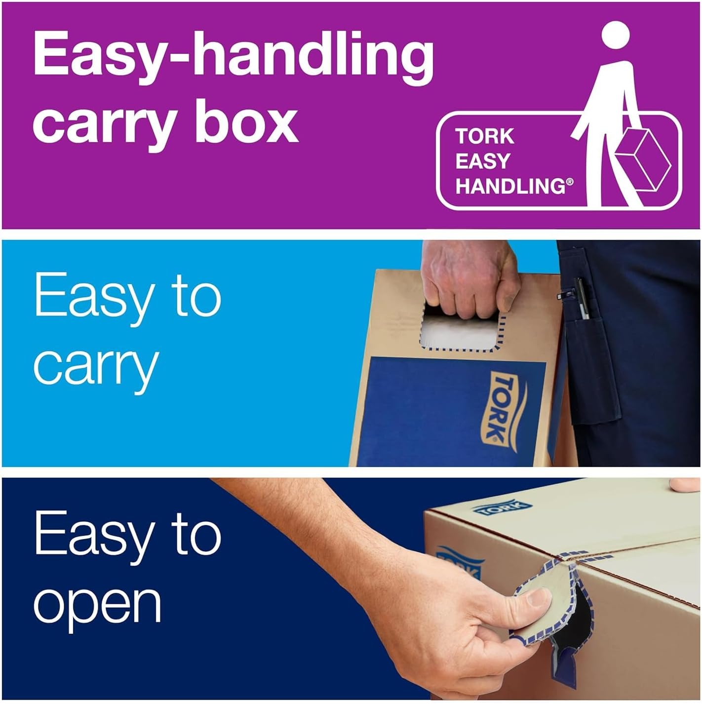 - Don't struggle with transport and storage—Tork Easy Handling packaging simplifies opening, transport, and disposal.