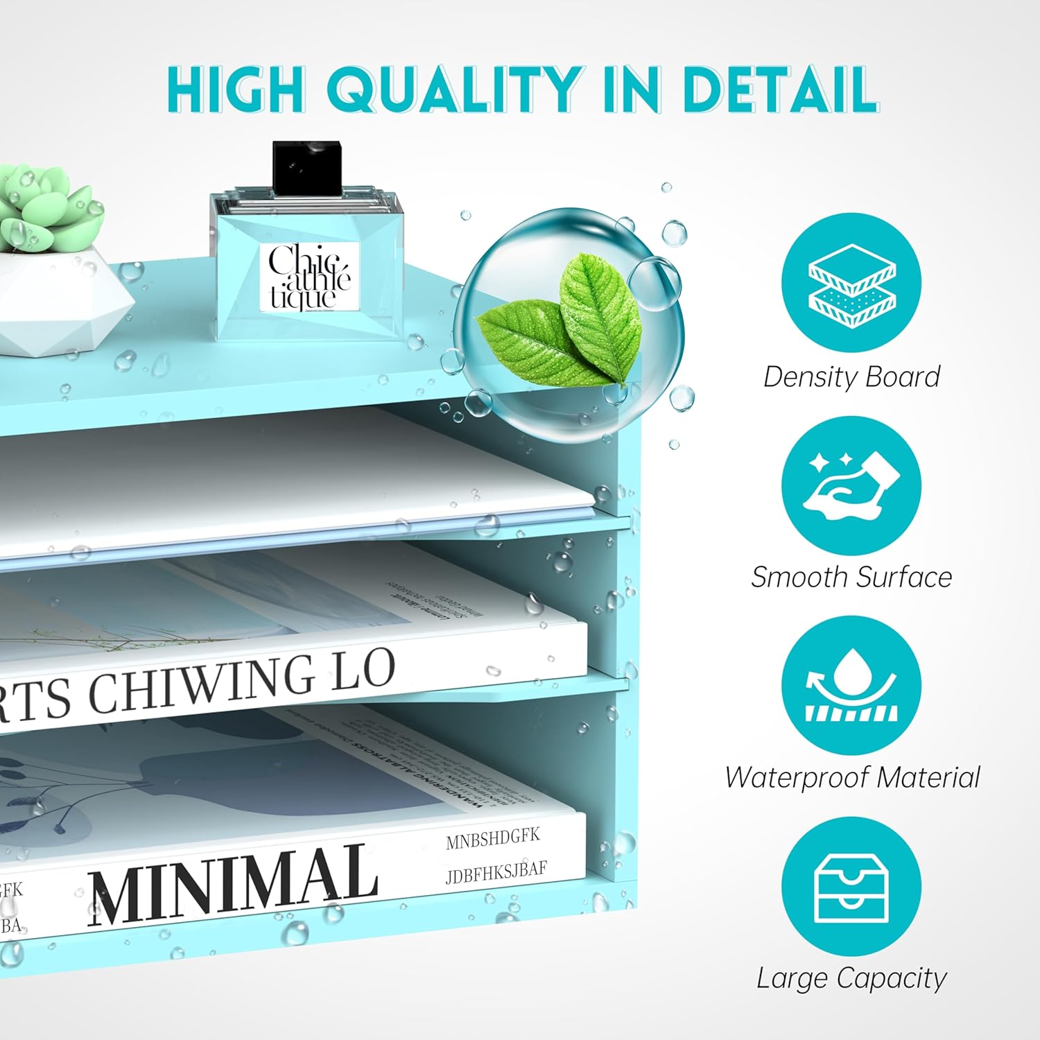 - [Elegant Shape & Color] The elegant design of our paper tray organizer makes it a great addition to any workspace. The smooth matte finish also help this desktop shelf add on perfectly to your office or home set up. The curved design of the shelves is beautiful and make you pick up the files easier.