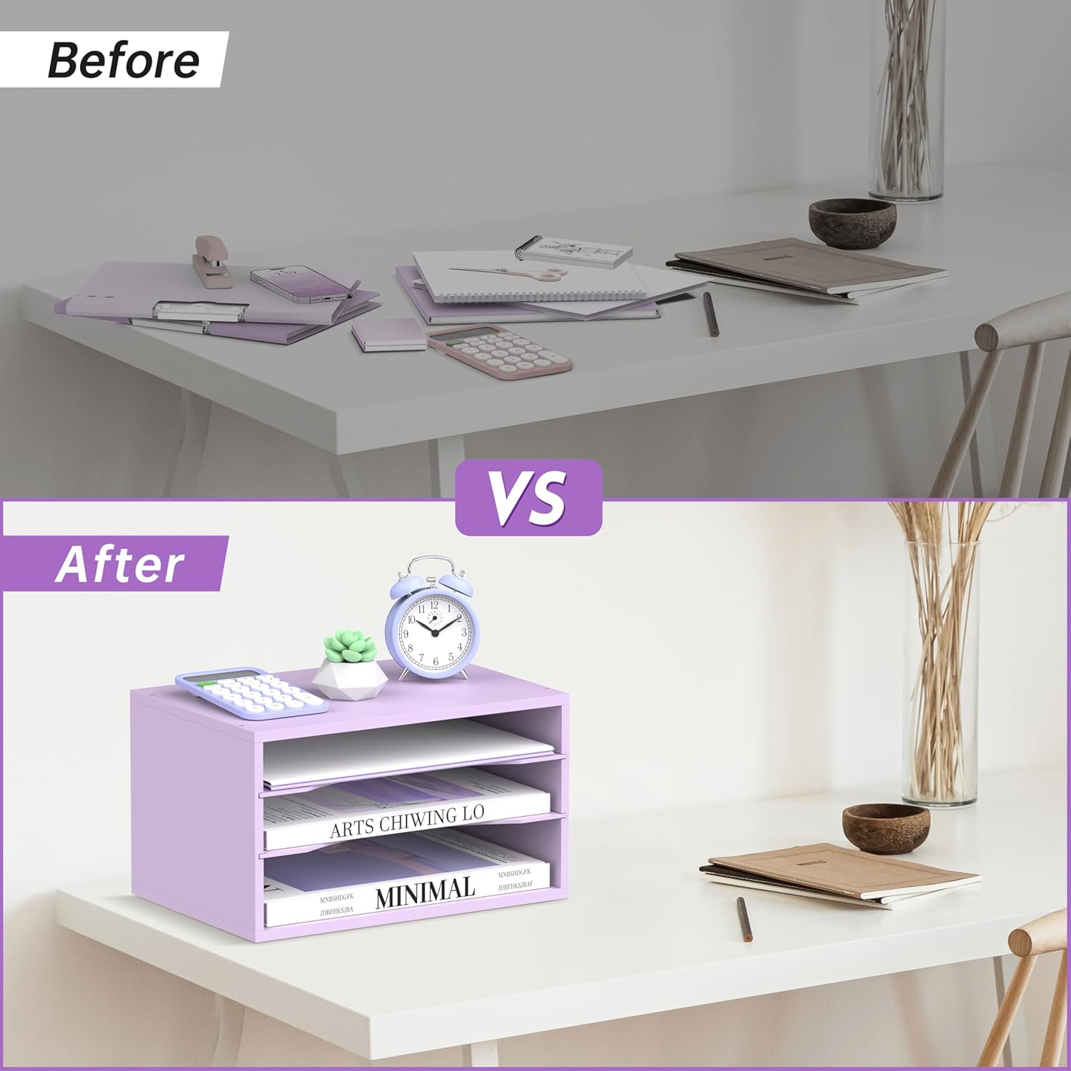 - [Easy to Assemble] This paper organizer for desk is easy to assemble with the manual installation and video we provide. Hardware are included in the package. You can put this desk organizer tray into use within several minutes. It will be your wonderful choice for desk accessories & workspace organizers.