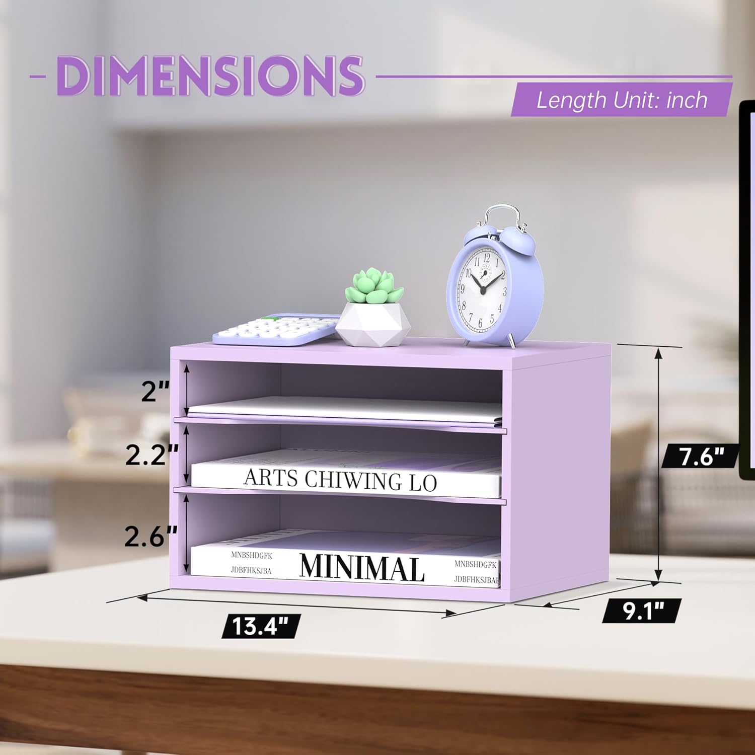 SUPEASY Wood Desk Organizer, 3 Tier Paper File Organizer for Desk, Wooden Desktop Organizer, Paper Letter Literature Mail Sorter, for Office School & Home Organization, Purple