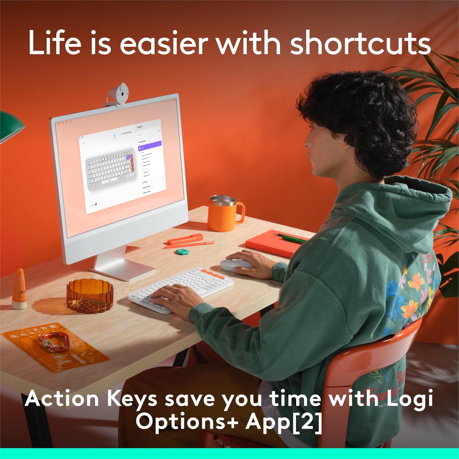 - Start With a POP: Proudly express yourself and own your space with the Logitech POP ICON KEYS, a wireless Bluetooth keyboard with a bold aesthetic, comfy typing, and customizable Action Keys (1)