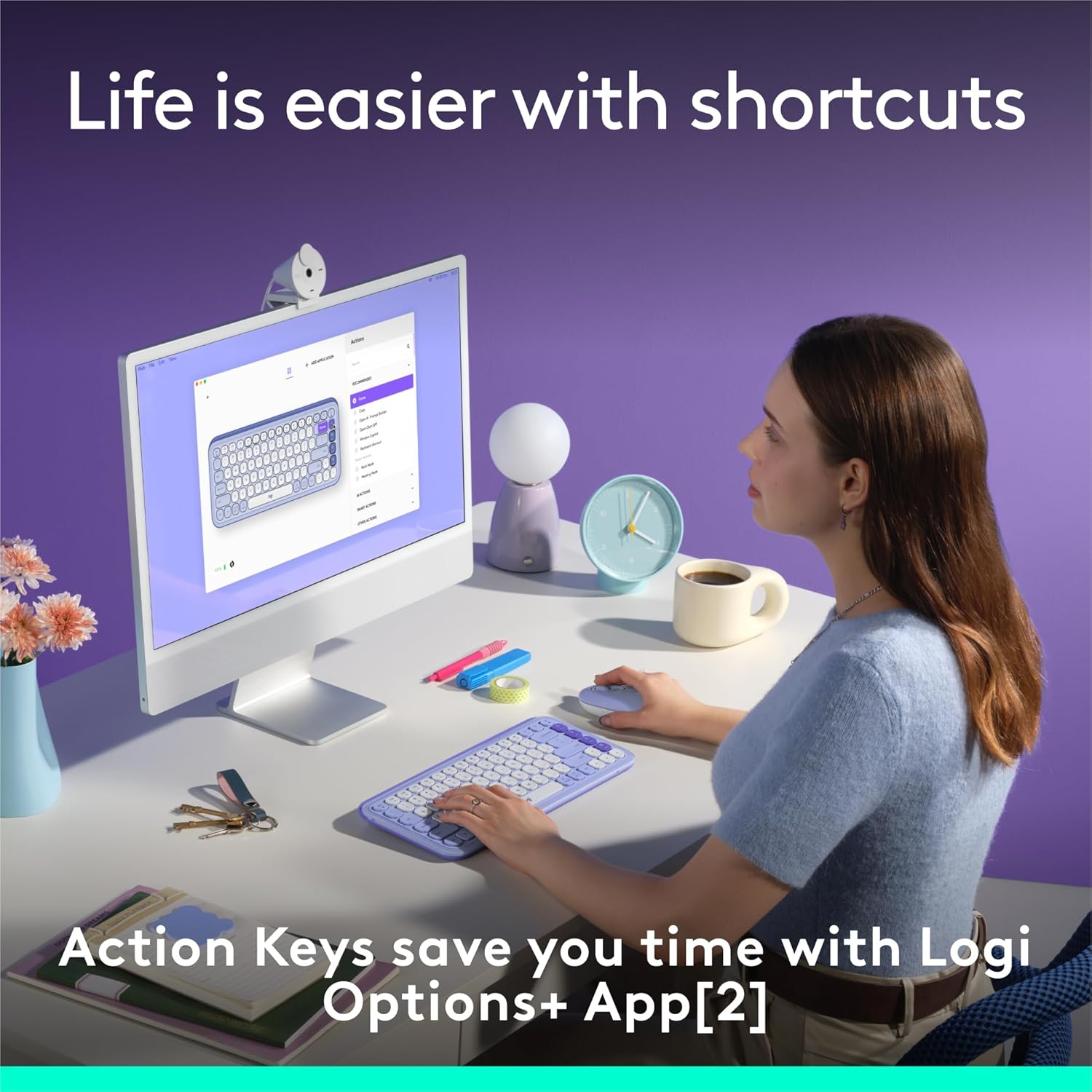 - Start With a POP: Proudly express yourself and own your space with the Logitech POP ICON KEYS, a wireless Bluetooth keyboard with a bold aesthetic, comfy typing, and customizable Action Keys (1)