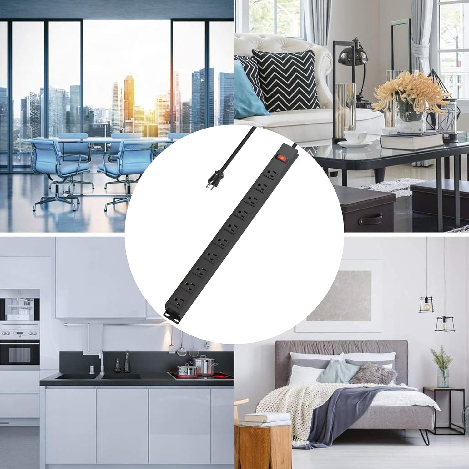 10 Outlet Metal Power Strip,8FT Long Extension Cord Heavy Duty for Kitchen,Office,School,Commercial,Workshop,Industrial,ETL Certified and Listed Socket,1825W/125V/15A,Black(8FT)