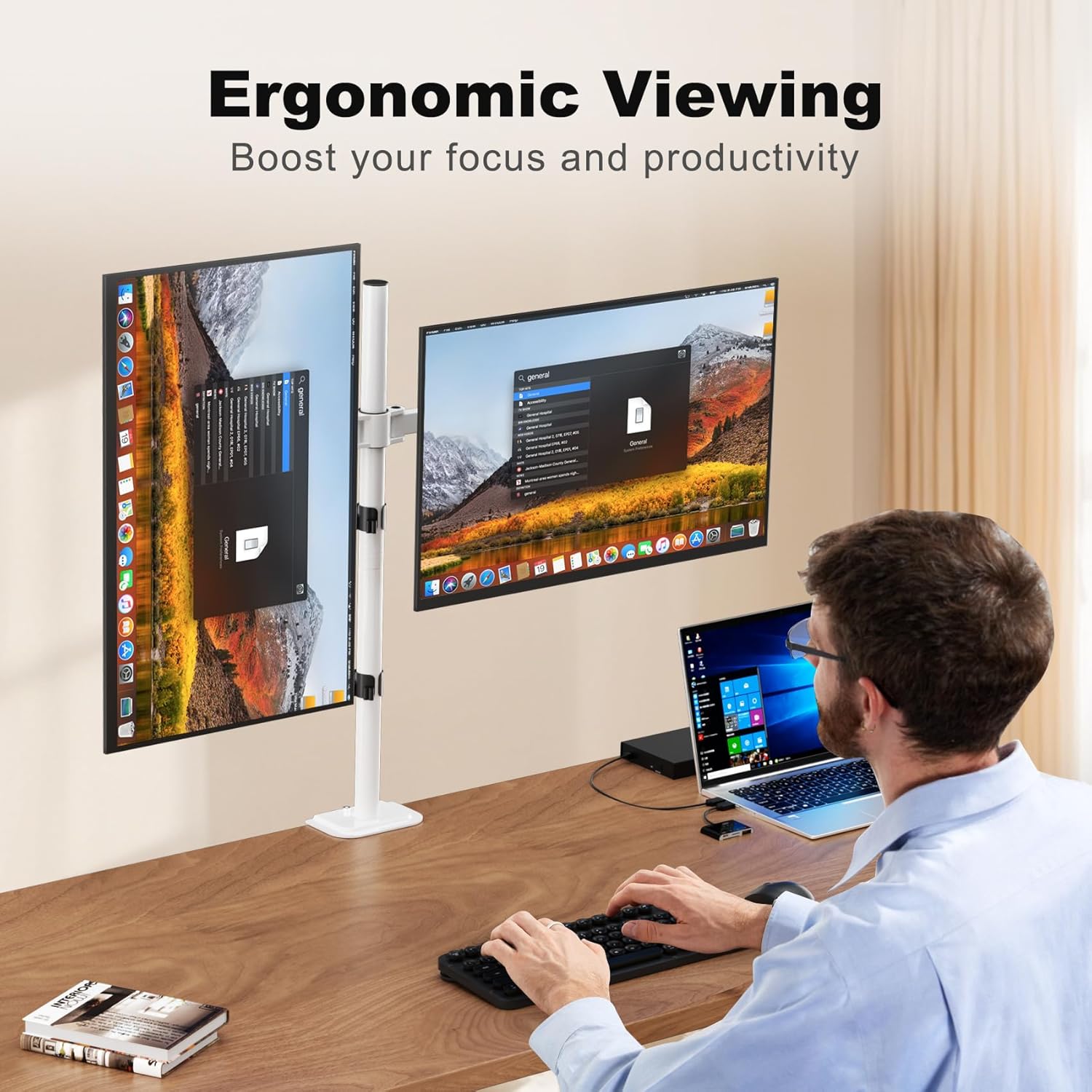 - Compatibility - Dual monitor mount ideal for most screens up to 27" and 22lbs each with 75x75mm or 100x100mm backside mounting holes.