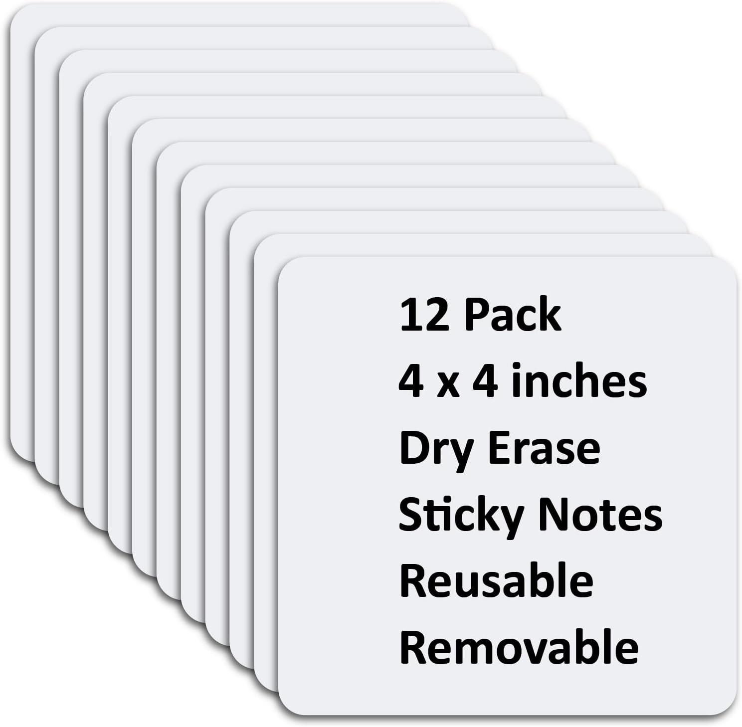 SVNOOC Multi-Use Dry Erase Sticky Notes, Reusable Labels Stickers for Wall Desk Fridge Office Classroom Home All Purpose Use, Removable, White (4 * 4 inches) 12 Pack