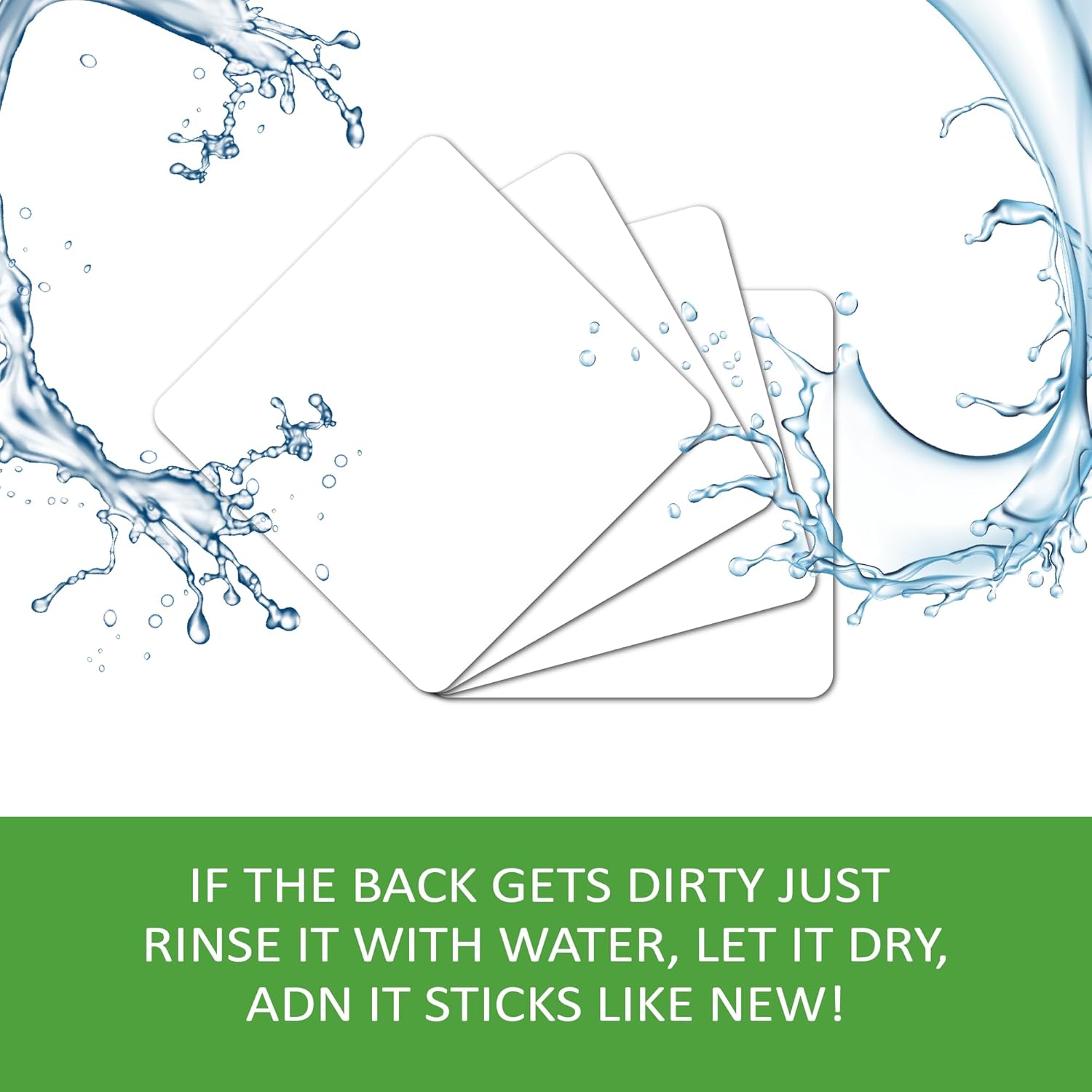 - 💖Really Reusable Dry Erase Sticky Notes - SVNOOC dry erase sticky notes are made of Freon-free Nano Material and dry erase film, can be reused up to10,000 times each. Smooth writing and wipe off easily, no glue, no magnetic but can stick well, heat resistant, microwave safe, just WASH to Renew if get dirt or stickless