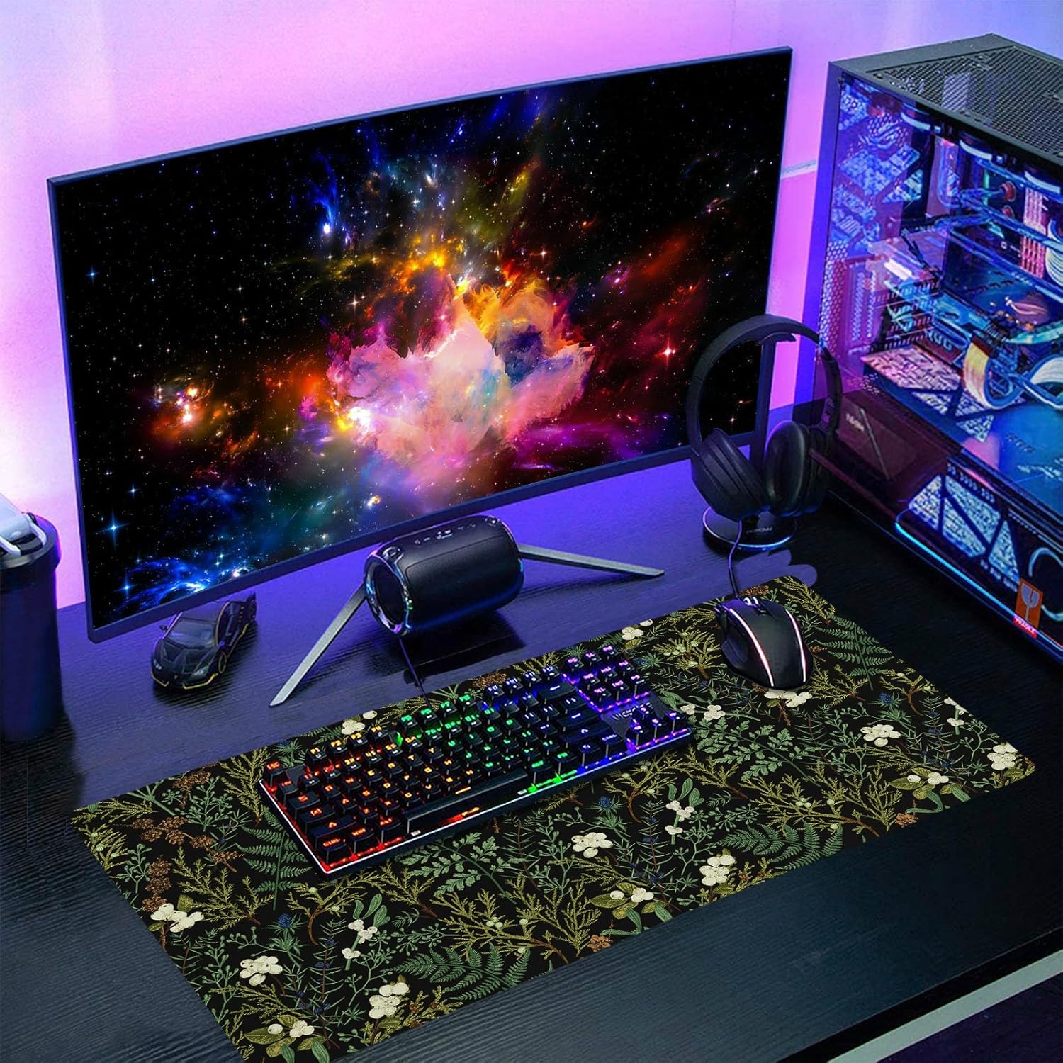 - ★【Large Mouse Pad】:The size of gaming mouse pad: 24x14 inches. Black Aesthetic Vintage Botanical mousepad provides the perfect movement space for home/office writing, drawing, or gaming with extended arm movements. The extended mouse pad xxl applies to all types of keyboards and mice.