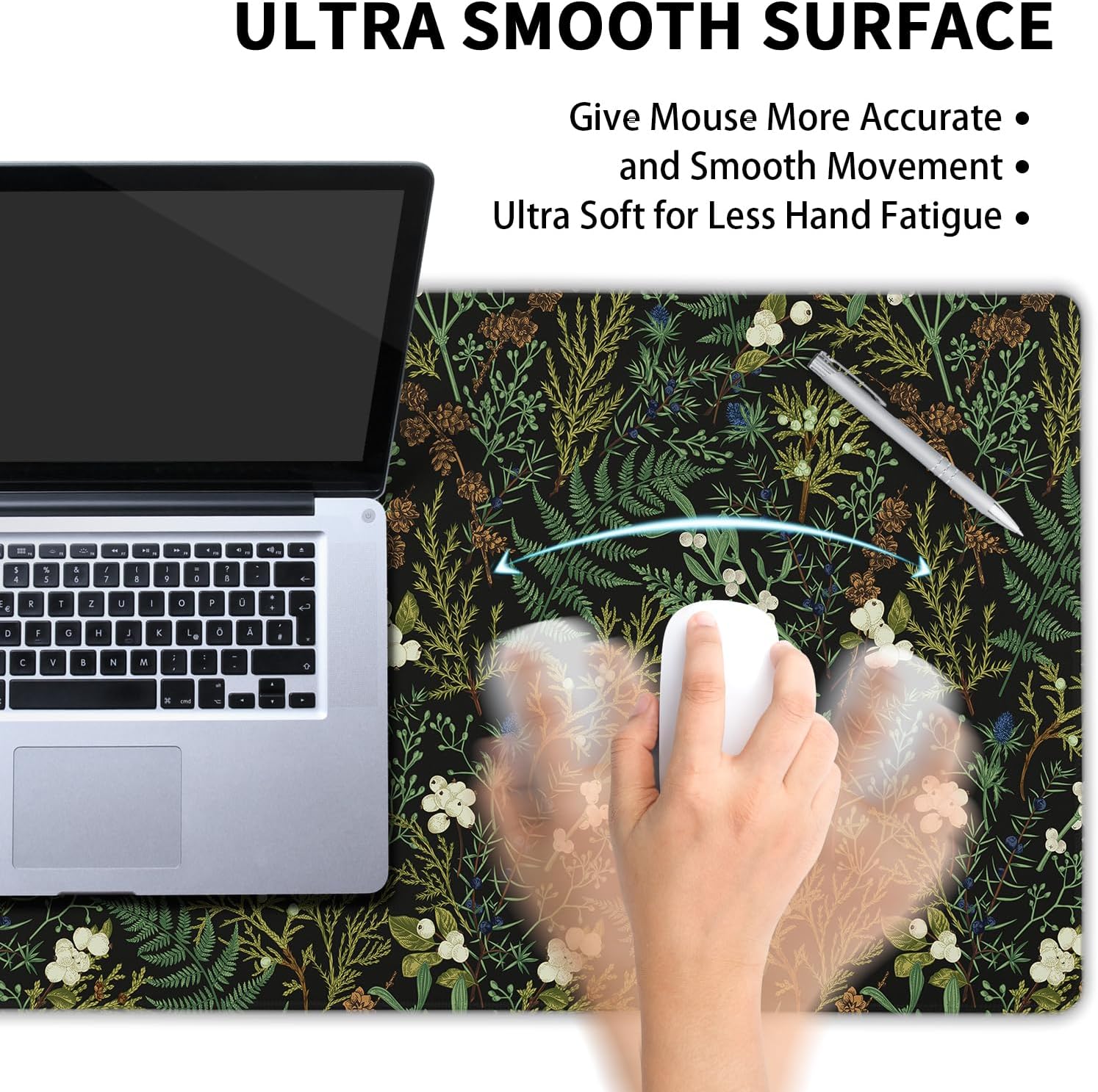- ★【Superior Control Surface】: Cute Forest Green Plant Nature Floral computer mouse pad large designed with superfine fiber braided Material, smooth surface will provide you with frustration-free mouse movement. Optimized for fast movement while maintaining excellent speed and control during your work or game.
