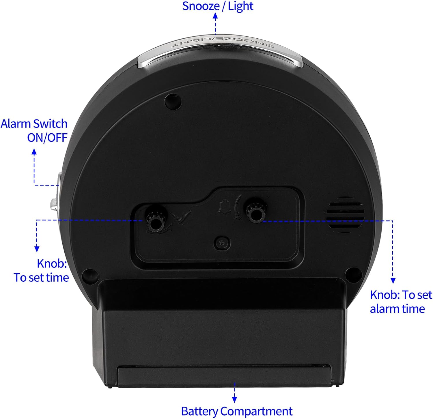 - Stable quartz alarm clock in classic design and round shape (4.3 x4 x 2.5 inch), easy operation two AA batteries(not included). Good beside wake up alarm clock for seniors, kids.