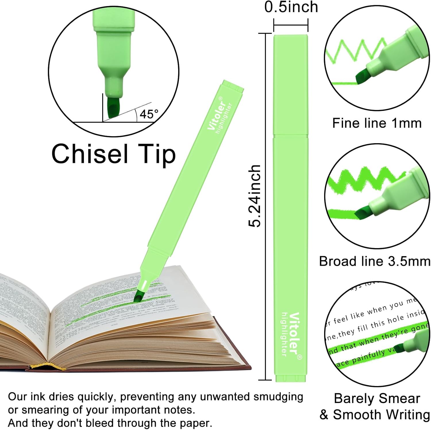 - 【No Bleed-Through】 Enjoy crisp, clear highlighting without worrying about ink seeping through the pages.