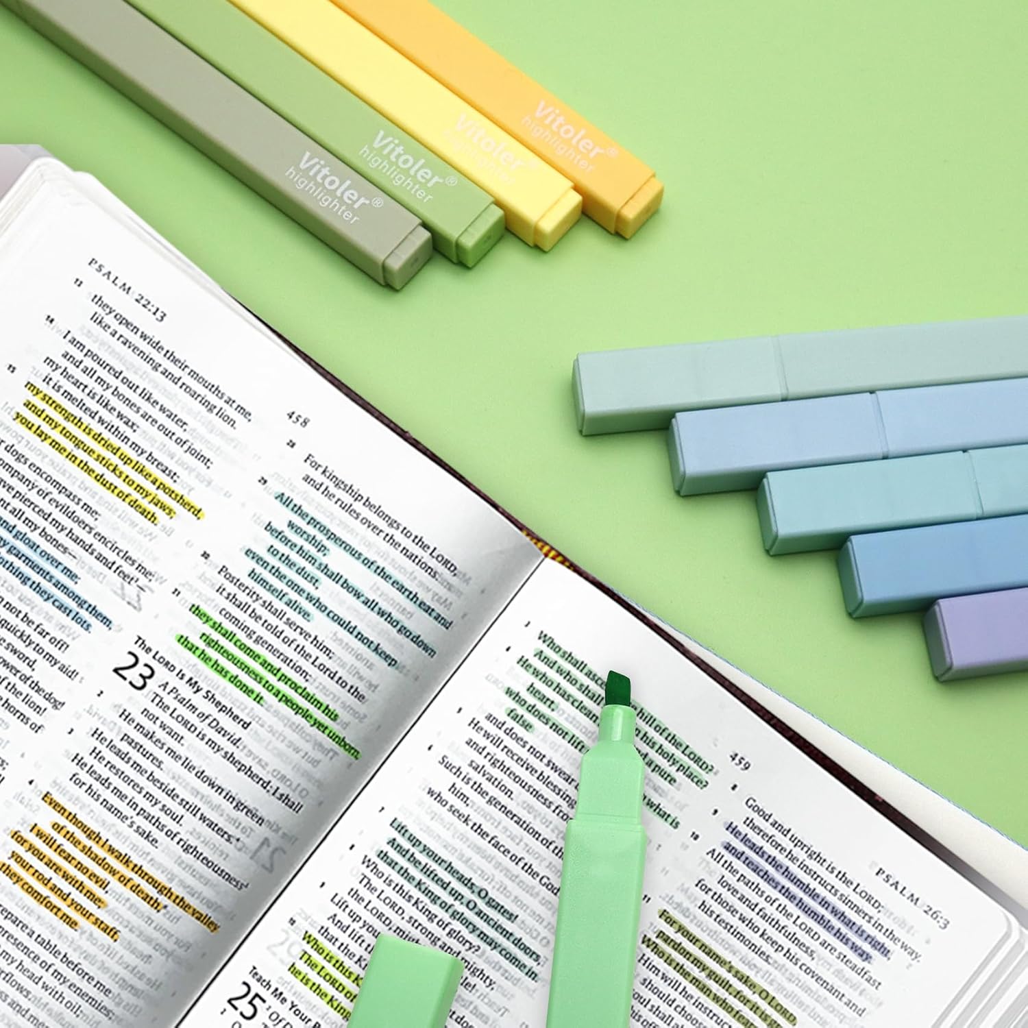 Vitoler 10Pack Bible Highlighters, Cute Assorted Colors Pastel Highlighters No Bleed Chisel Tip Highlighter for Aesthetic School Supplies