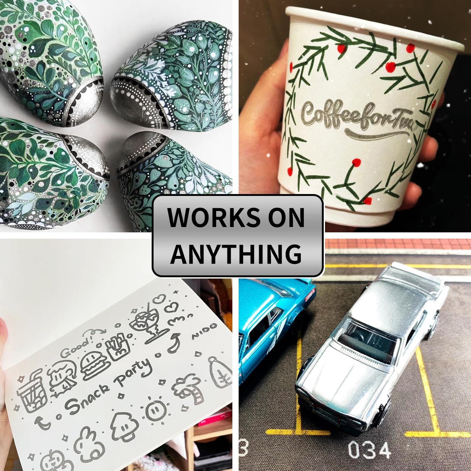 - Extensive Use: Paint pens mark steel and mark objects such as tires, bolts, metal pipes, bumper panels and more. Not just metal, Silver permanent markers can be used on rocks,wood, ceramic, canvas, tires, rubber, glass and plastic surfaces