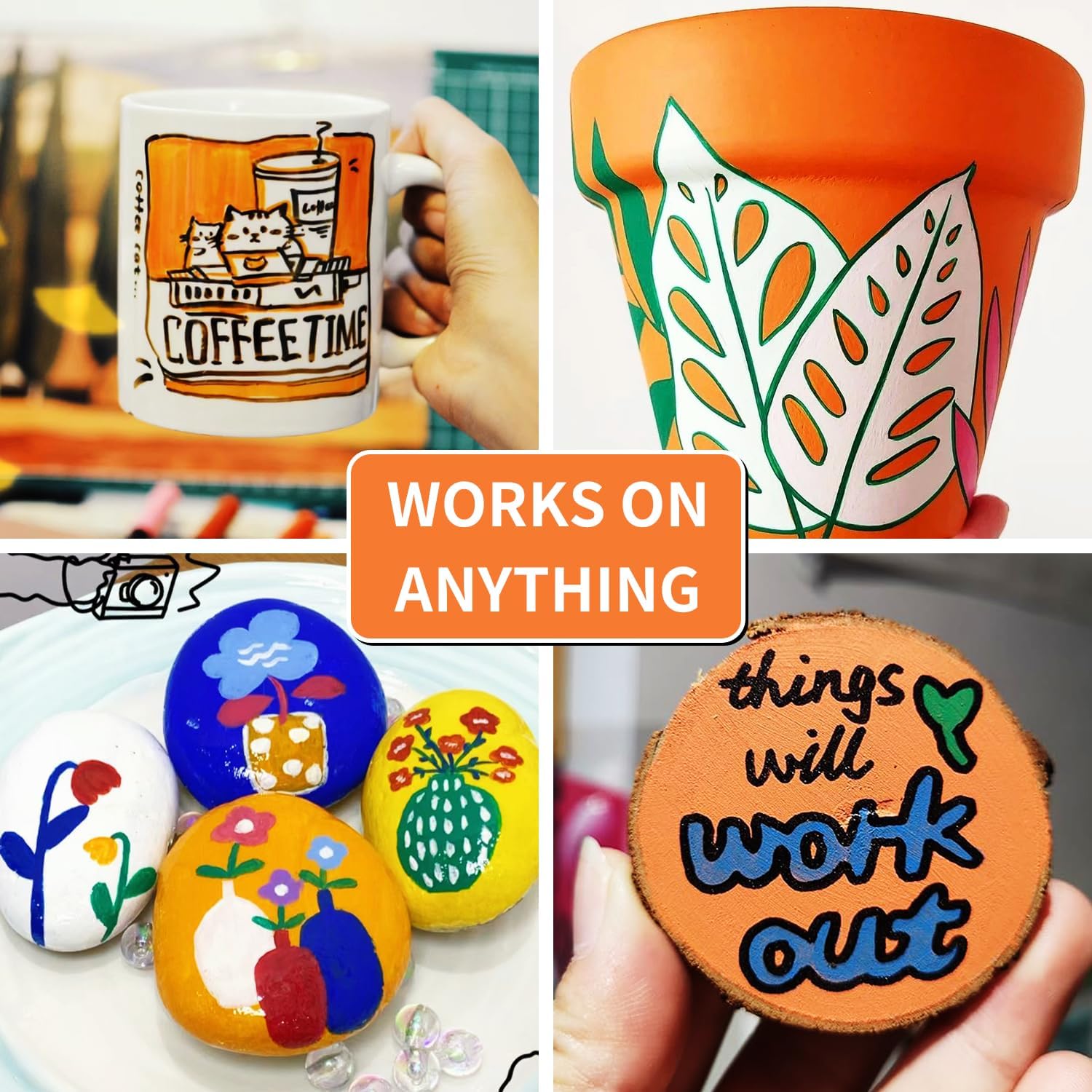 - Quick-Drying: Featuring quick-drying oil-based ink that resists water, fading and abrasion. The oil based paint pens is glossy. For Instant gratification: Get your projects completed in record time with our quick-drying markers, Drying time 45 - 60 seconds