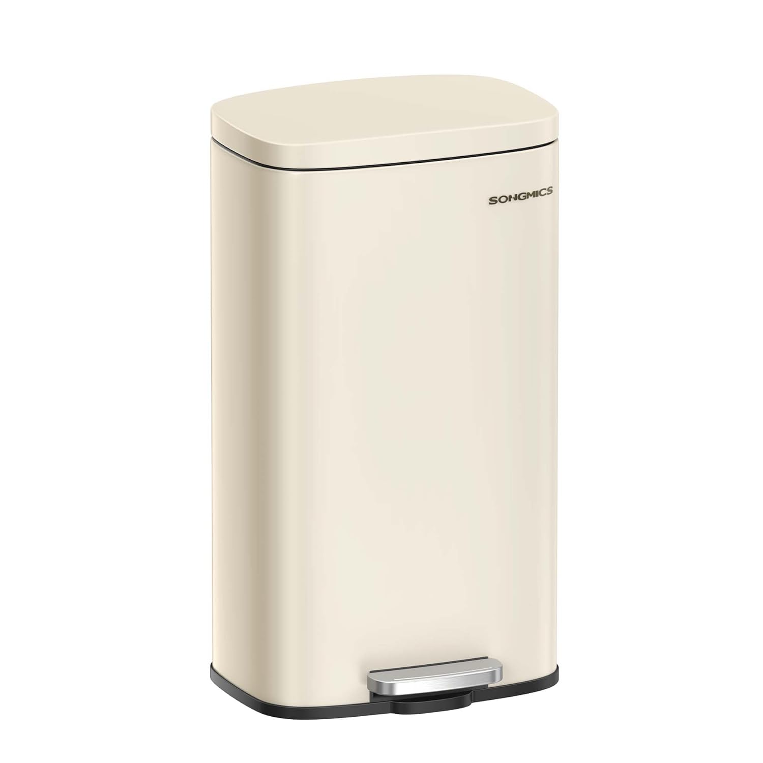 SONGMICS Trash Can with Lid, 8 Gallon Garbage Can, Stainless Steel Small Waste Bin with Step Pedal and Inner Bucket, Soft Close, Kitchen, Sand Beige ULTB003A01