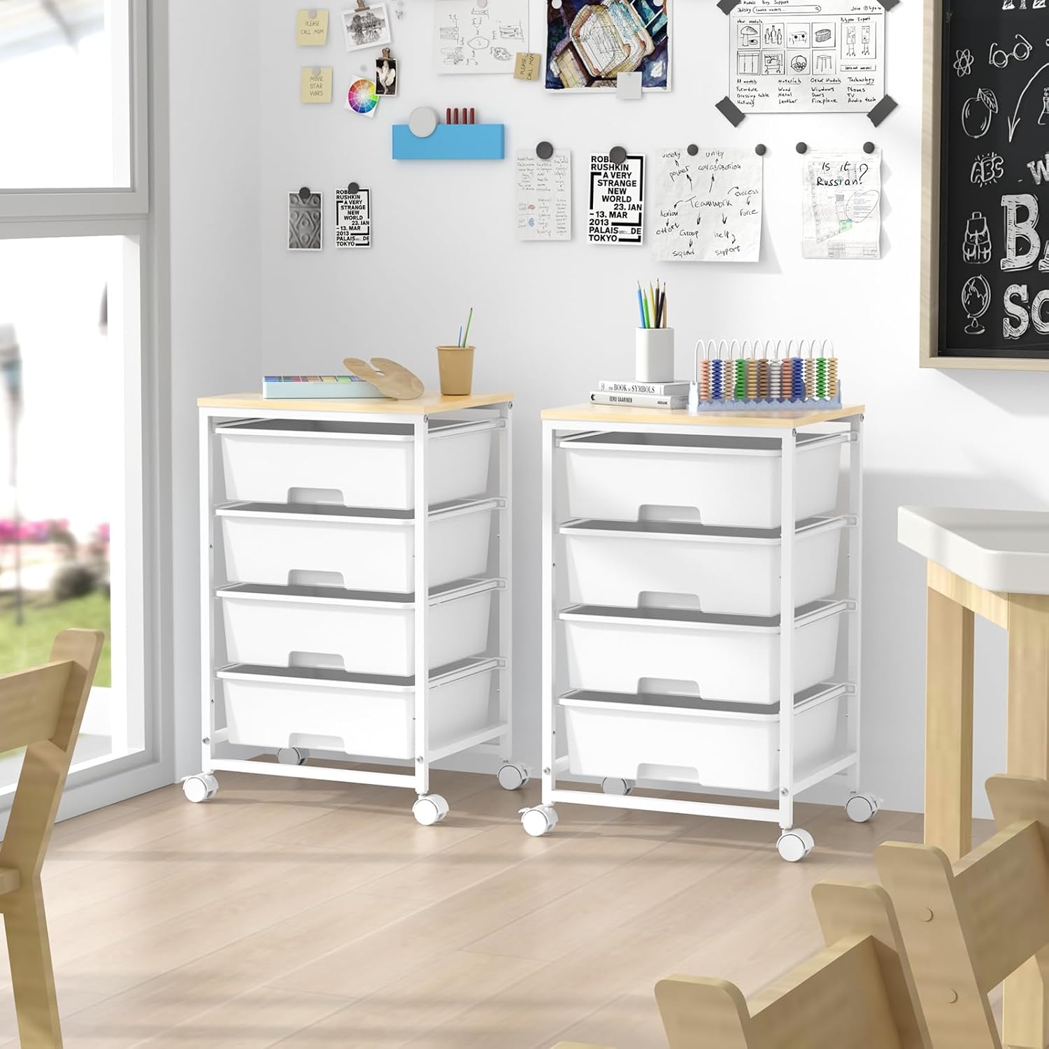 Utility Cart with 4 Drawers, Multipurpose Rolling Storage Cart with 4 Drawers and 2 Lockable Wheels, 4-Tier Rolling Storage Cart Organizer for Home Office Dorm, Bright White