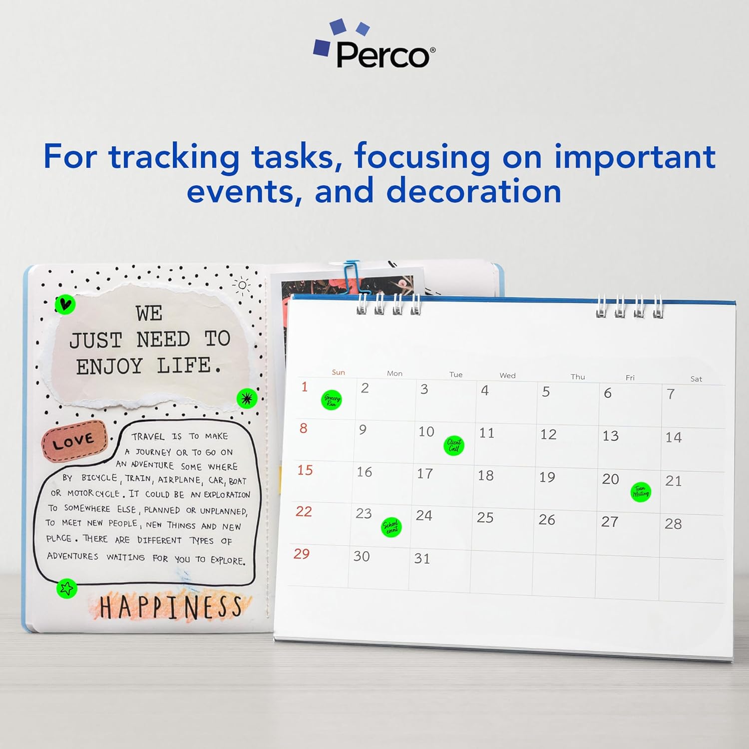 Perco Fluorescent Green 1/2-Inch Round Circle Dot Sticker Labels with Easy Peel Perforation - 3,000 Labels per Roll - Strong Adhesion, Vibrant Colors for Organizing, Crafting & More - Made in USA