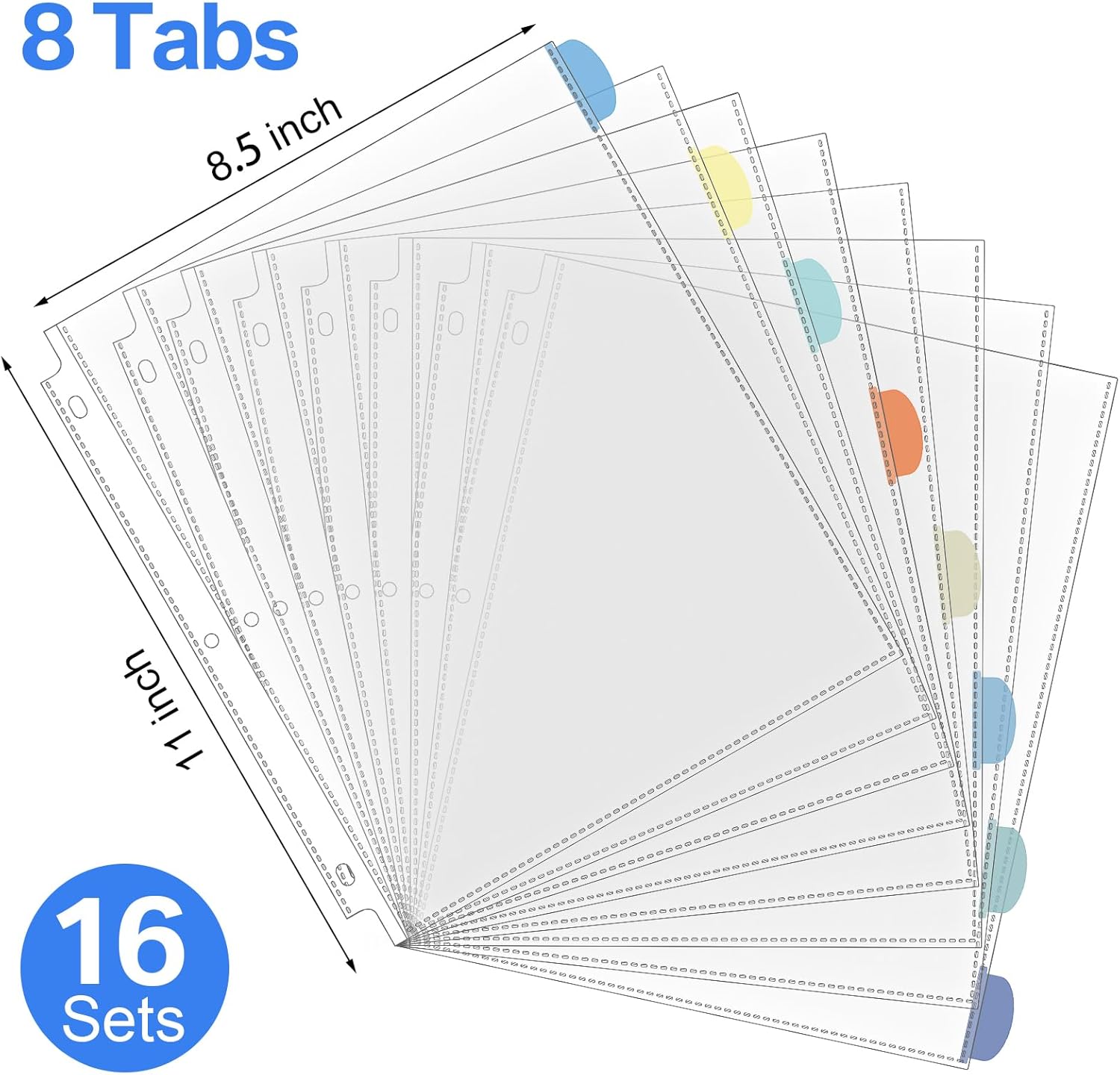 - 8 Tabs: each set of clear sheet protectors for 3 ring binder comes with 8 tabs, so you can easily organize, categorize and locate different sections within your documents easily; A transparent paper protector allows you to view documents clearly