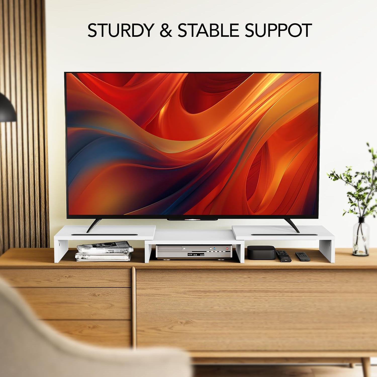 - UPGRADED PRODUCT DIMENSION: This monitor stand riser maximum 40.9 inch in length, holds up to 55 lbs, both increased by 15%. This dual monitor riser brings you a more convenient home and office life.