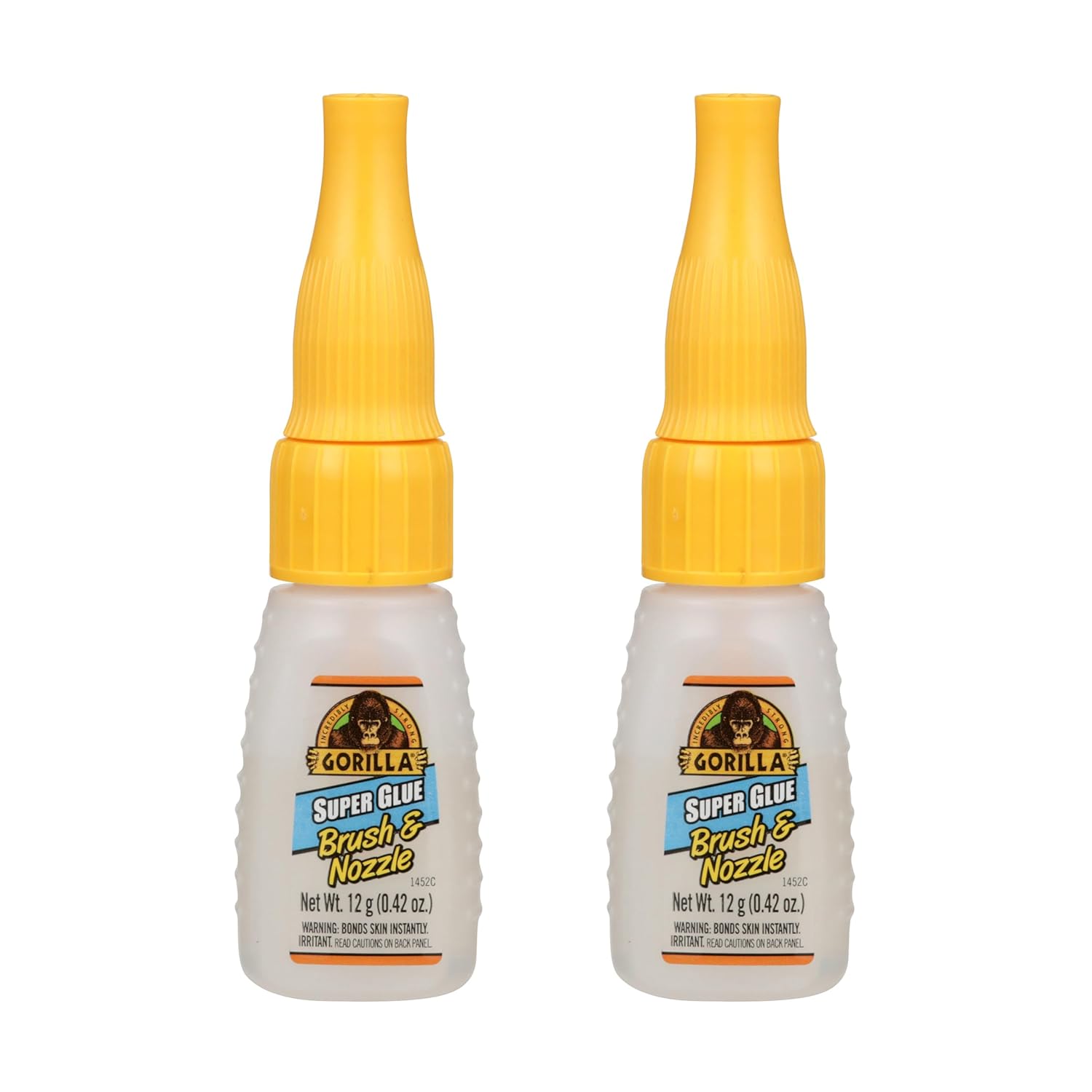 Gorilla Super Glue with Brush & Nozzle Applicator, Clear Glue, 12 Gram (Pack of 2) - All Purpose and Fast Setting for Projects and Repairs