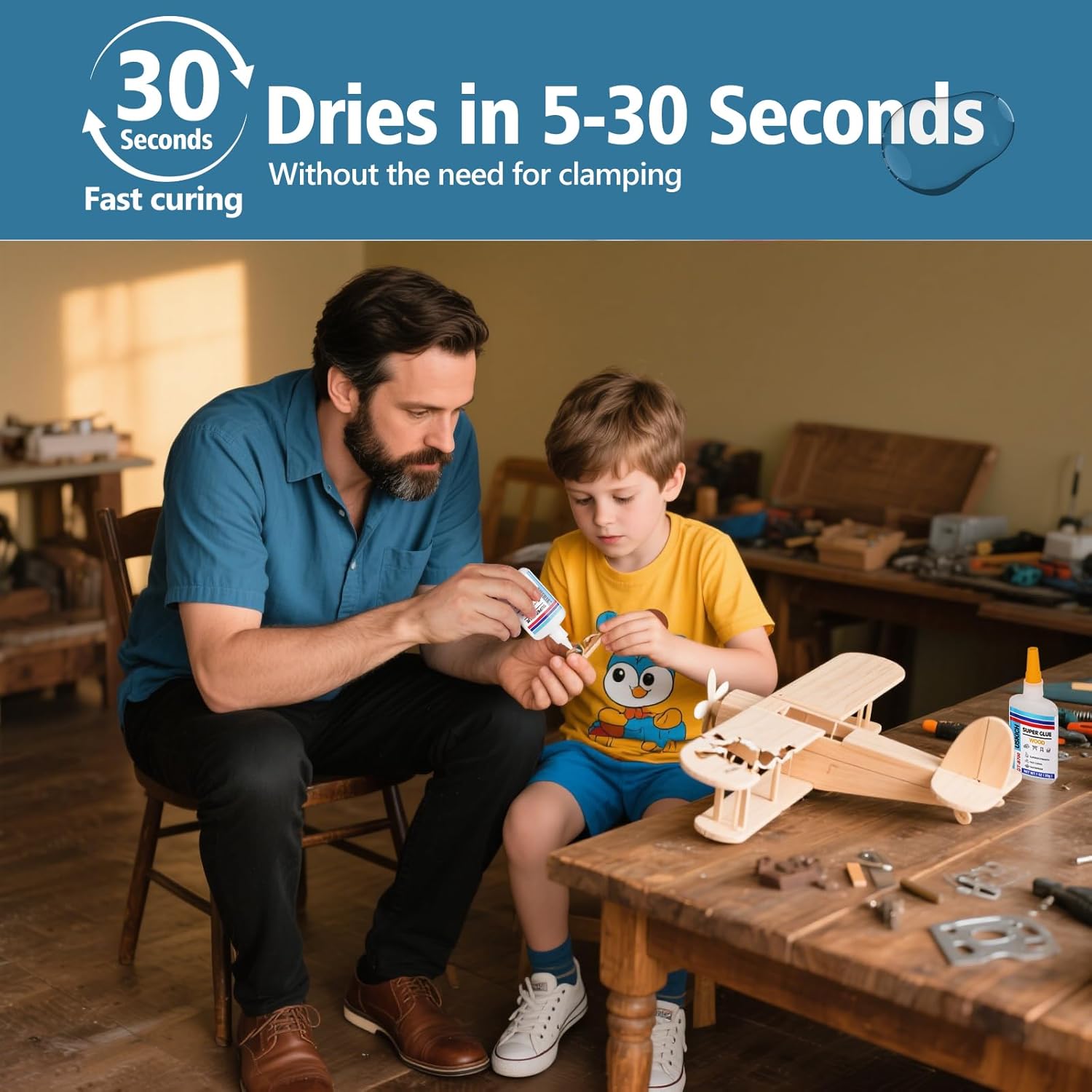- ⭐Fast And Versatile And Efficient: Instant wood glue bonds in just 5-30 seconds,the clear liquid Ideal for furniture repairs and model building, woodworking, our wood furniture glue sets dries clear, guaranteeing visually appealing and strong bonds. The wood flooe glue is perfect for furniture assembly and fine woodworking and can handle clamping to enhance bond strength