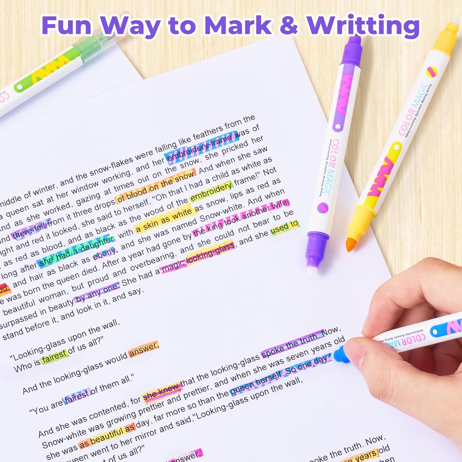 JoyCat 10 Color Changing Highlighter Pens,Dual Tip Magic Markers,Assorted Fluorescent Colors for Art Journaling,Note Taking&School Office Journaling Supplies,No Bleed,Ideal gift&marker for Kids&Adult