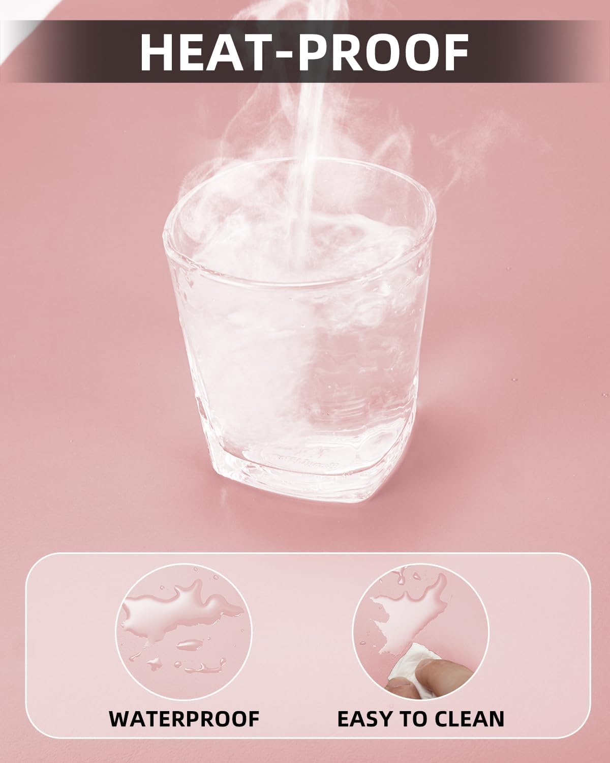 Pink Leather Desk Mat, Large Mouse Pad & Laptop Mat for Office & Home (23.6"x13.8")