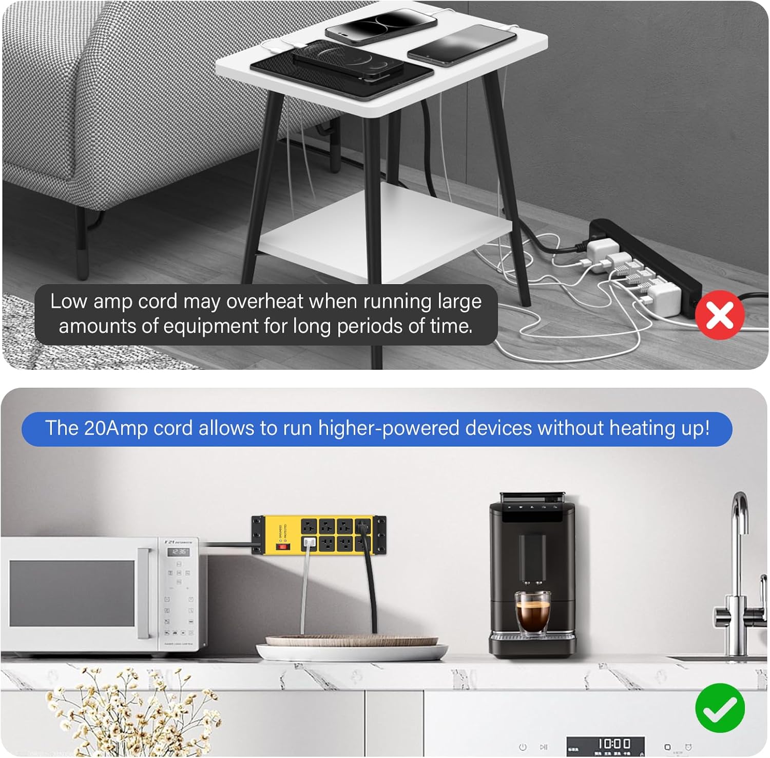 CCCEI 2PCS Heavy Duty Power Strip Surge Protector 20 AMP, 8 Outlets 12 Gauge Shop Garage Metal Multiple Outlets, 6 FT Extension Cord 5-15P Adapter High Amp 6-20R T-Slot 20a for Appliance Yellow.