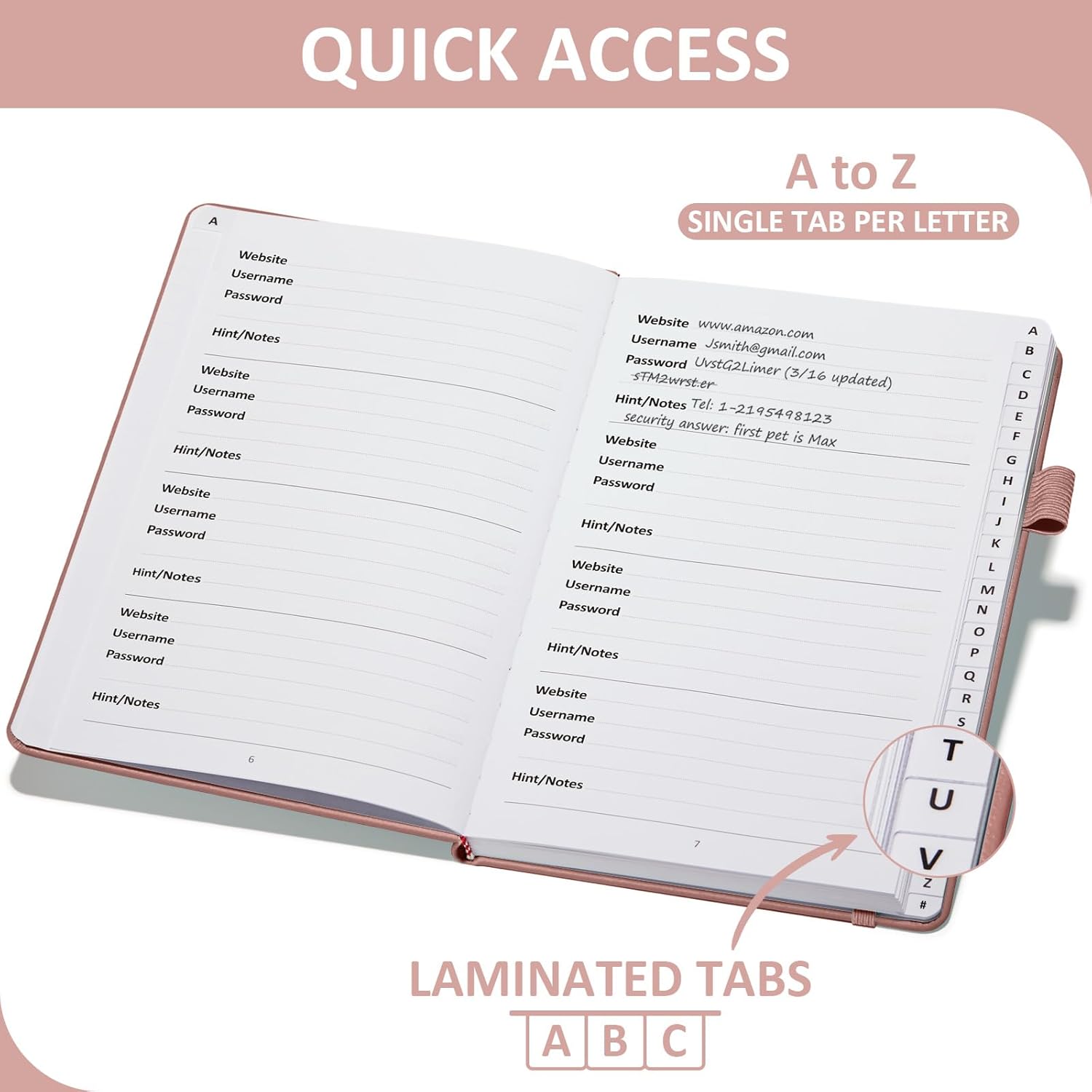 - Offline Security and Accessibility - The Comkiso internet password logbook with alphabetical tabs is not susceptible to hacking, providing a secure option for storing sensitive information offline. It's easy for you to write and access your passwords anytime, anywhere.