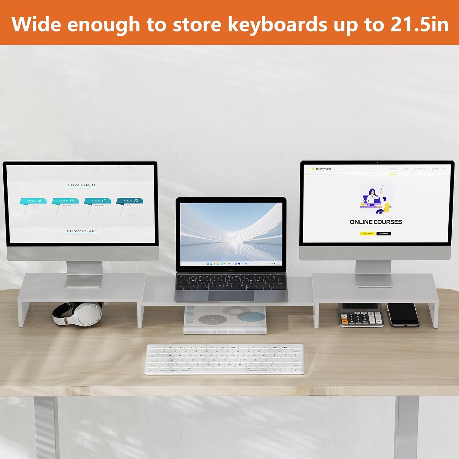 Triple Monitor Stand Riser, Extra Long Monitor Lift for 3 Monitors, Dual Monitor Stand with Length and Angle Adjustable