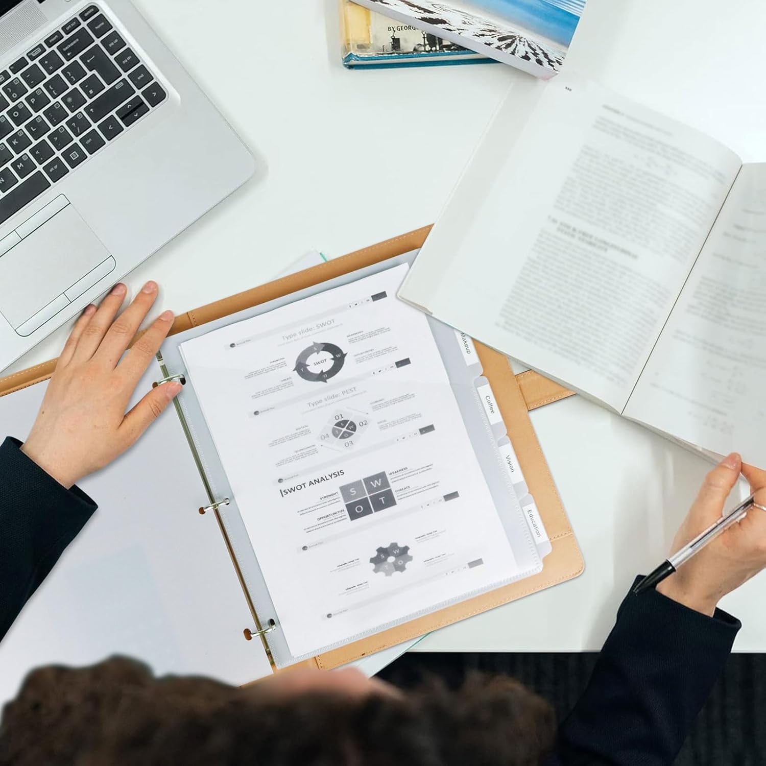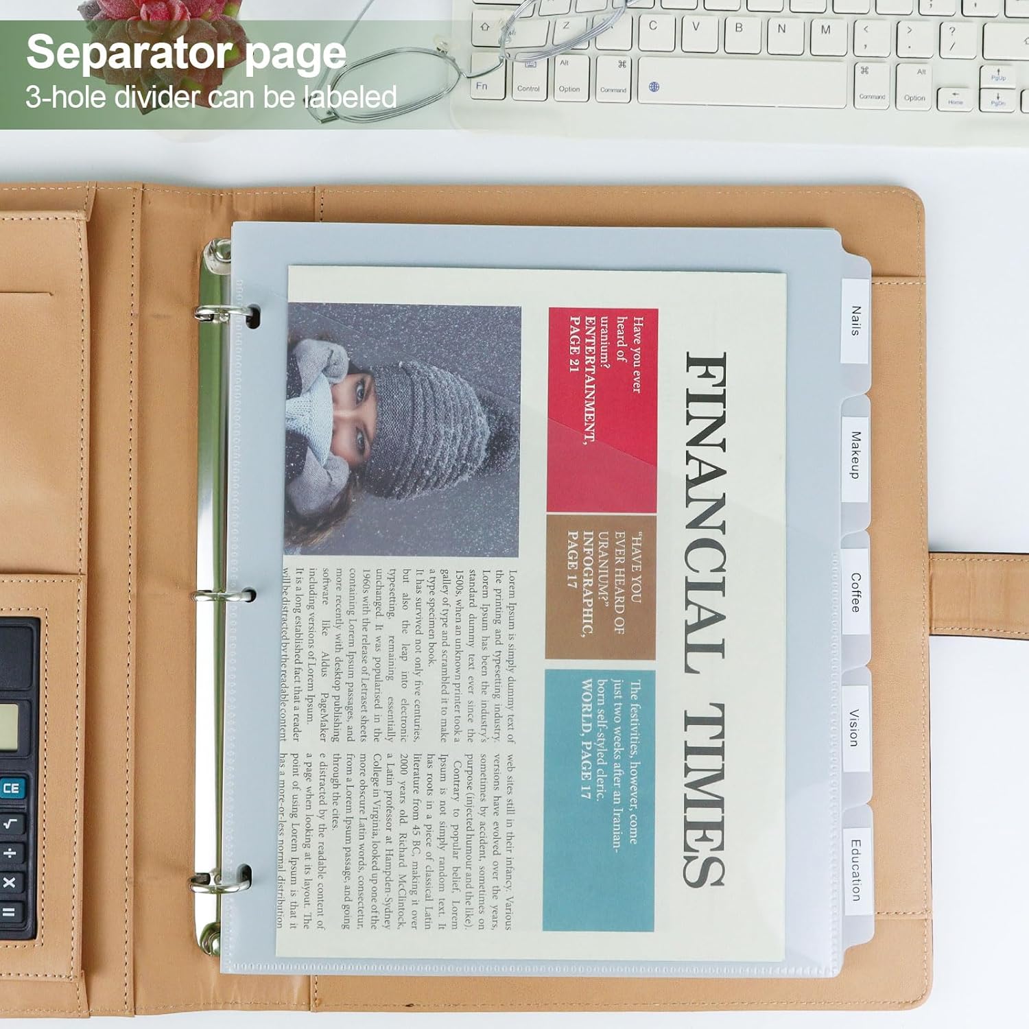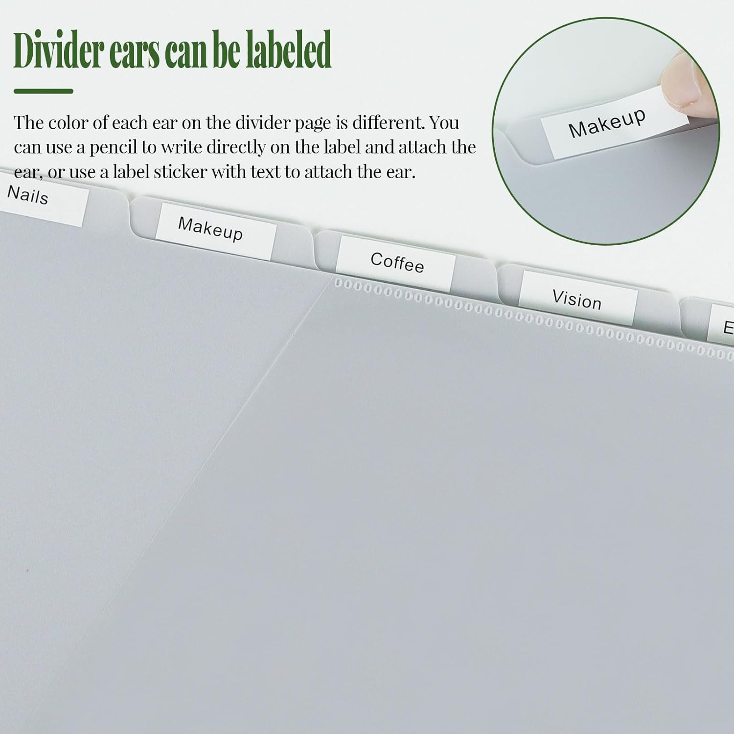 - 【Clear Front Inclined Pocket】Each plastic dividers features an inclined front pocket, are the perfect way to store loose papers in your 3-ring binder divider, and the semitransparent design also offer clear and easy browsing.