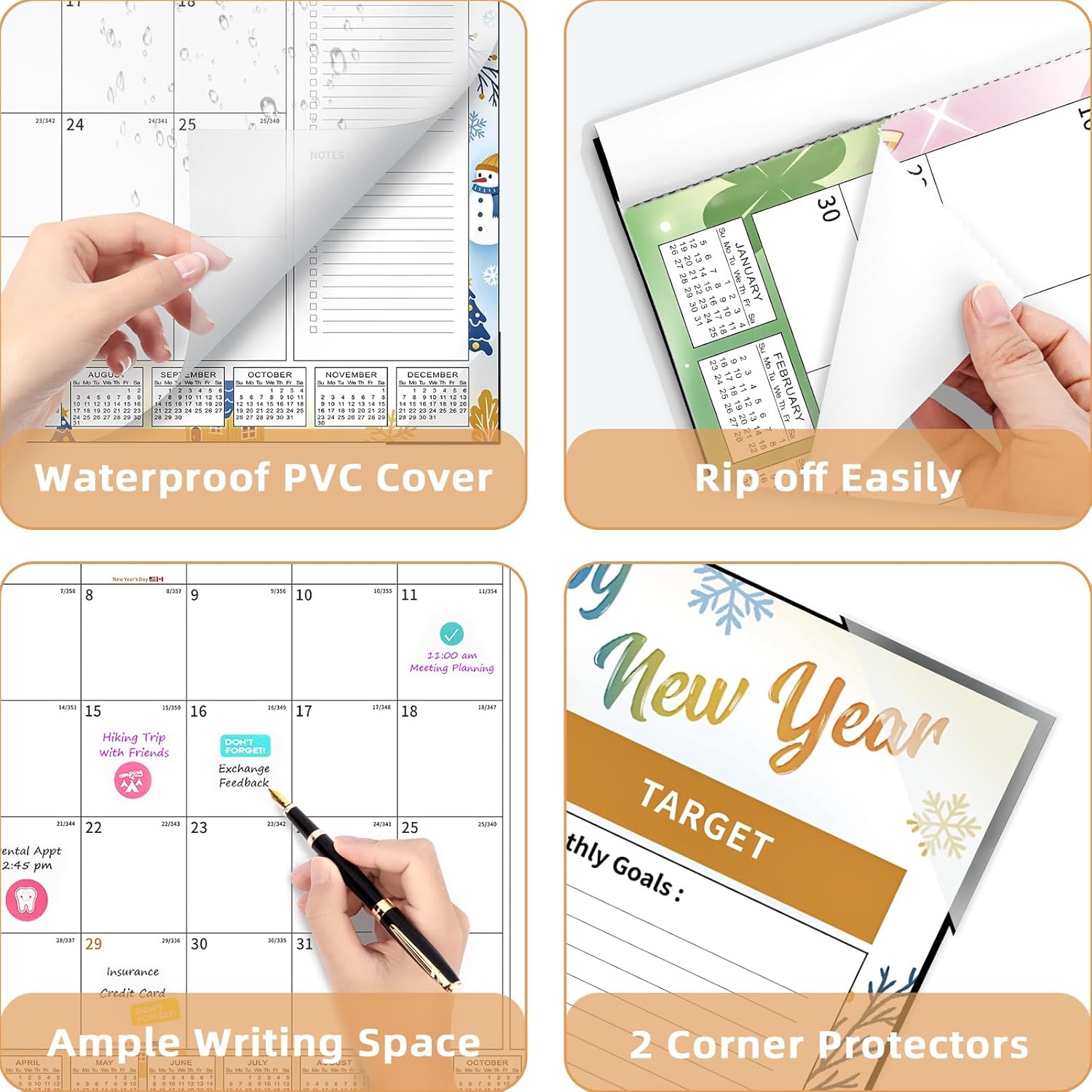 - 【Premium Thick Paper】With a weight of 0.264lb per sheet, the 2025 calendar is designed using premium thick paper, ensuring a high-quality writing experience. It is resistant to ink seepage, resulting in clean and crisp writing. To safeguard the calendar from dust and liquids, it comes with a transparent PVC cover. Two corner protectors are included to keep the pages flat. Plus, the cutting line allows for effortless tearing of each month's page. This desk calendar is perfect to long-term use.