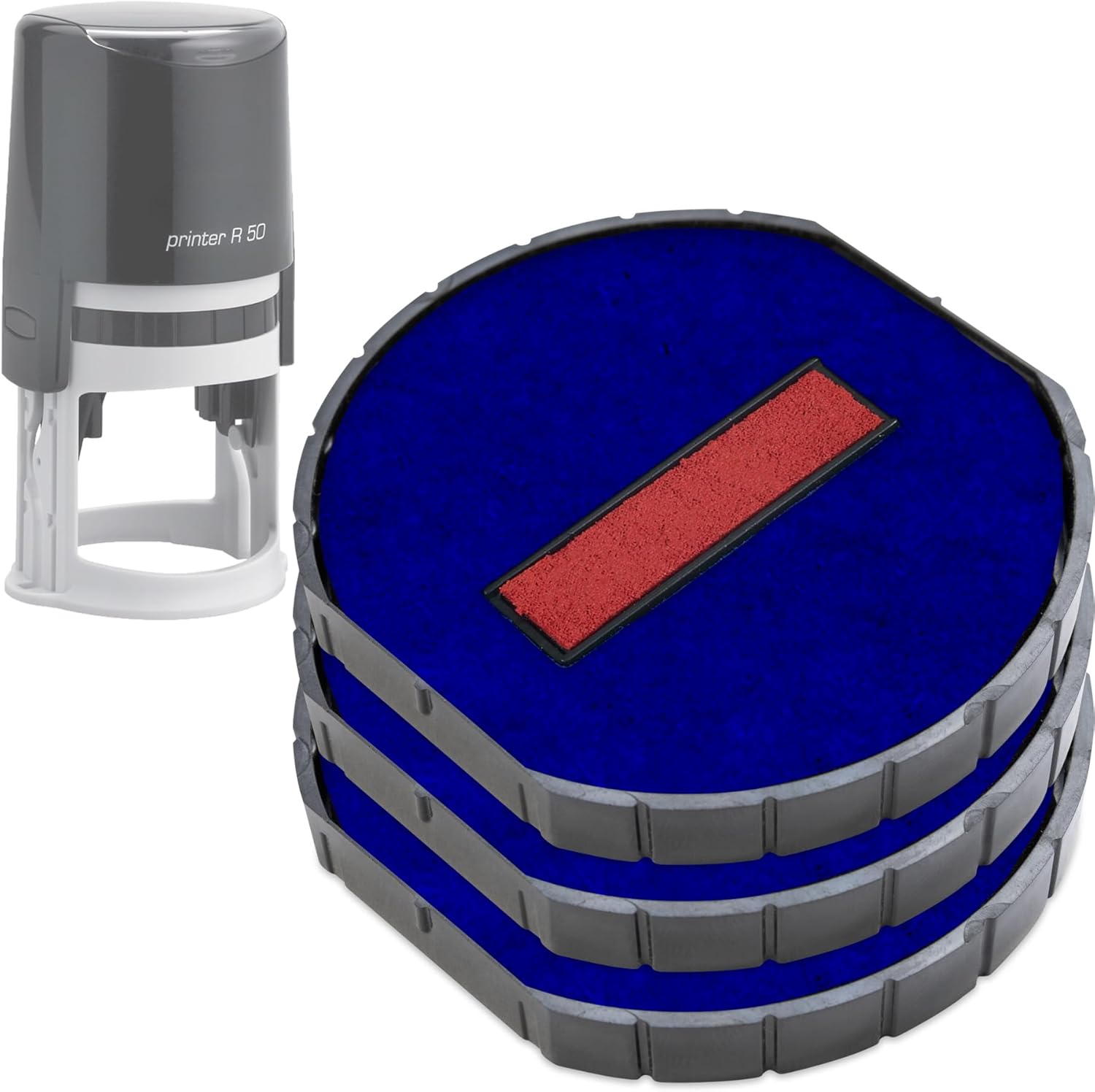 COLOP E/R50 Non-Toxic, Water Based Premium Replacement Pad for Printer R50 Stamp - Pack of 3 - Blue & Red (2 Colors)