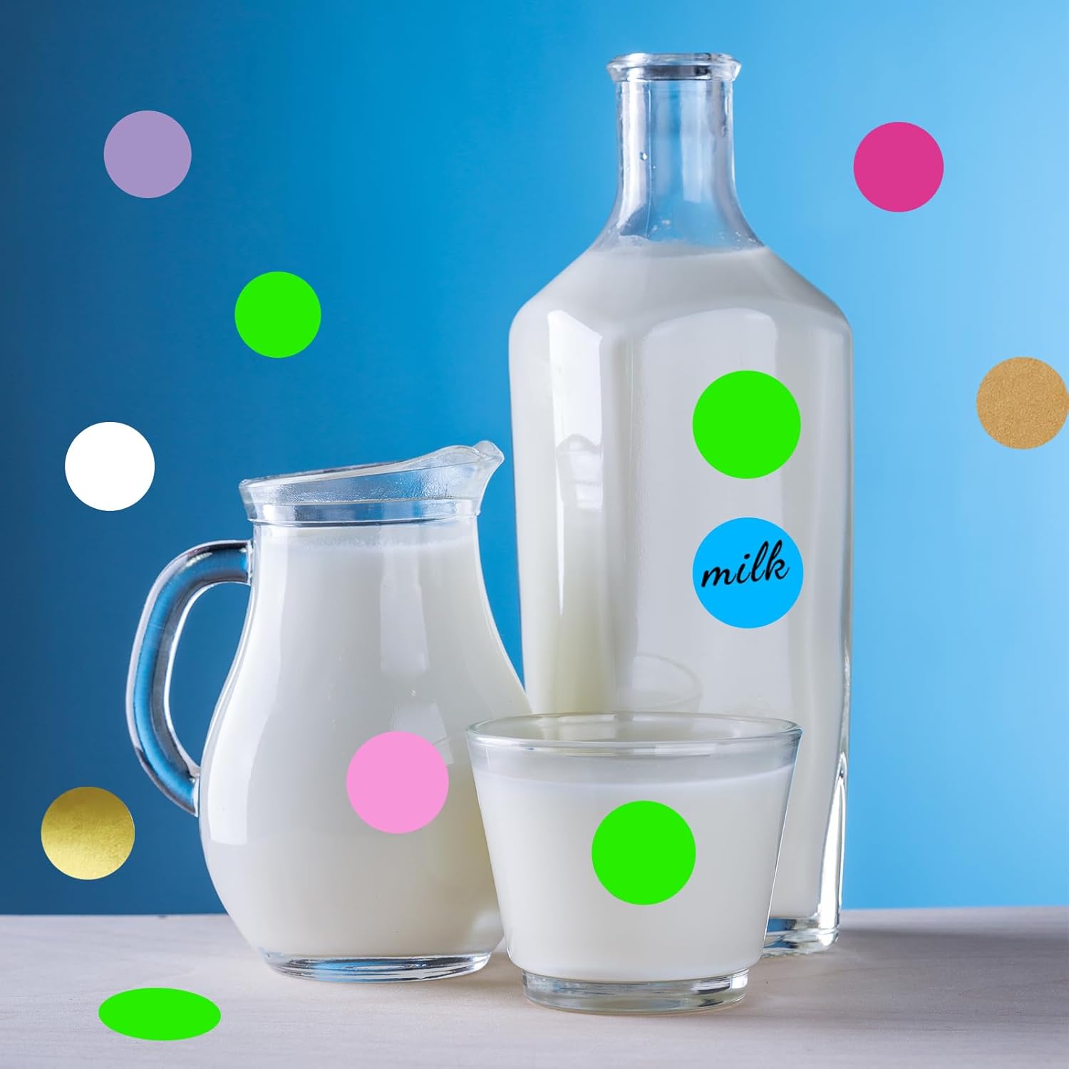 - Clean Remove Adhesive keeps each 1 inch circle sticker in place on most surfaces and removes without residue