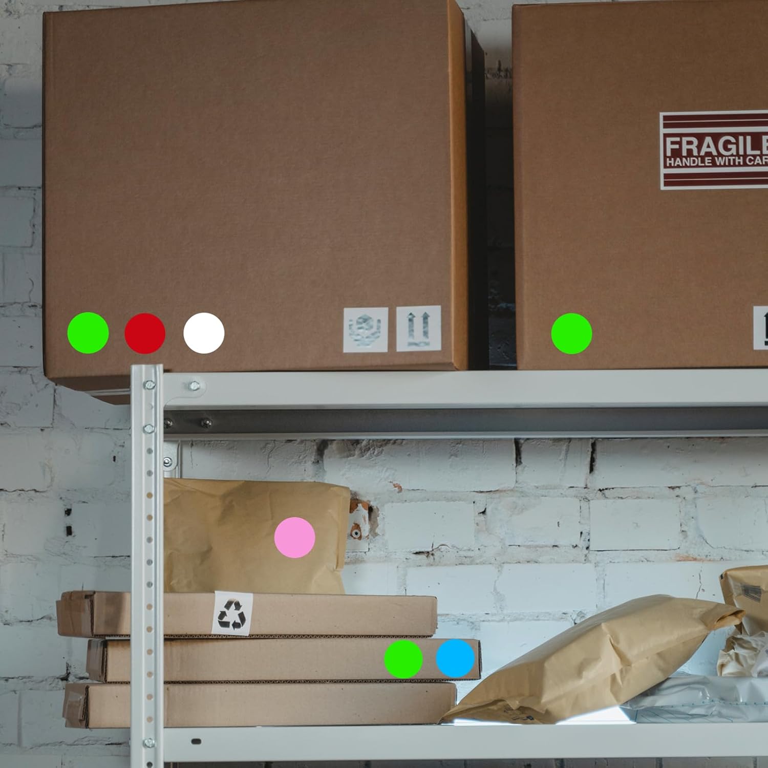 - 1050 removable labels per package, 1 -inch diameter,fluorescent green