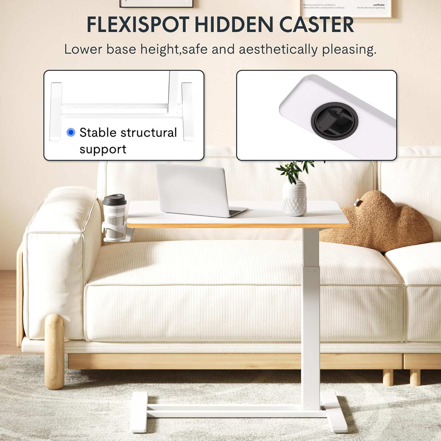 - Easy to move around & space-saving: Flexispot standing desk portable desk is equipped with 4 hidden casters to easily maneuver it anywhere you like. It’s an ideal portable workstation for any home or office! A low-profile base with smooth rolling wheels eases and tuck beneath furniture minimum 1.2" high to save space.