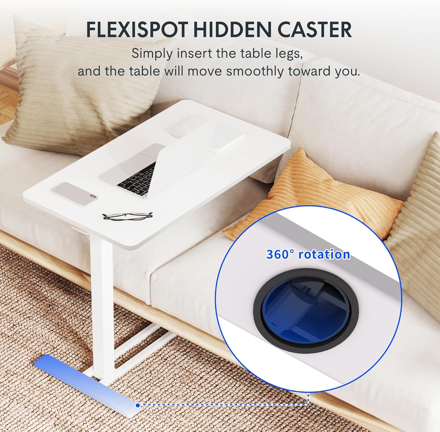 - Easy to move around & space-saving: Flexispot standing desk portable desk is equipped with 4 hidden casters to easily maneuver it anywhere you like. It’s an ideal portable workstation for any home or office! A low-profile base with smooth rolling wheels eases and tuck beneath furniture minimum 1.2" high to save space.