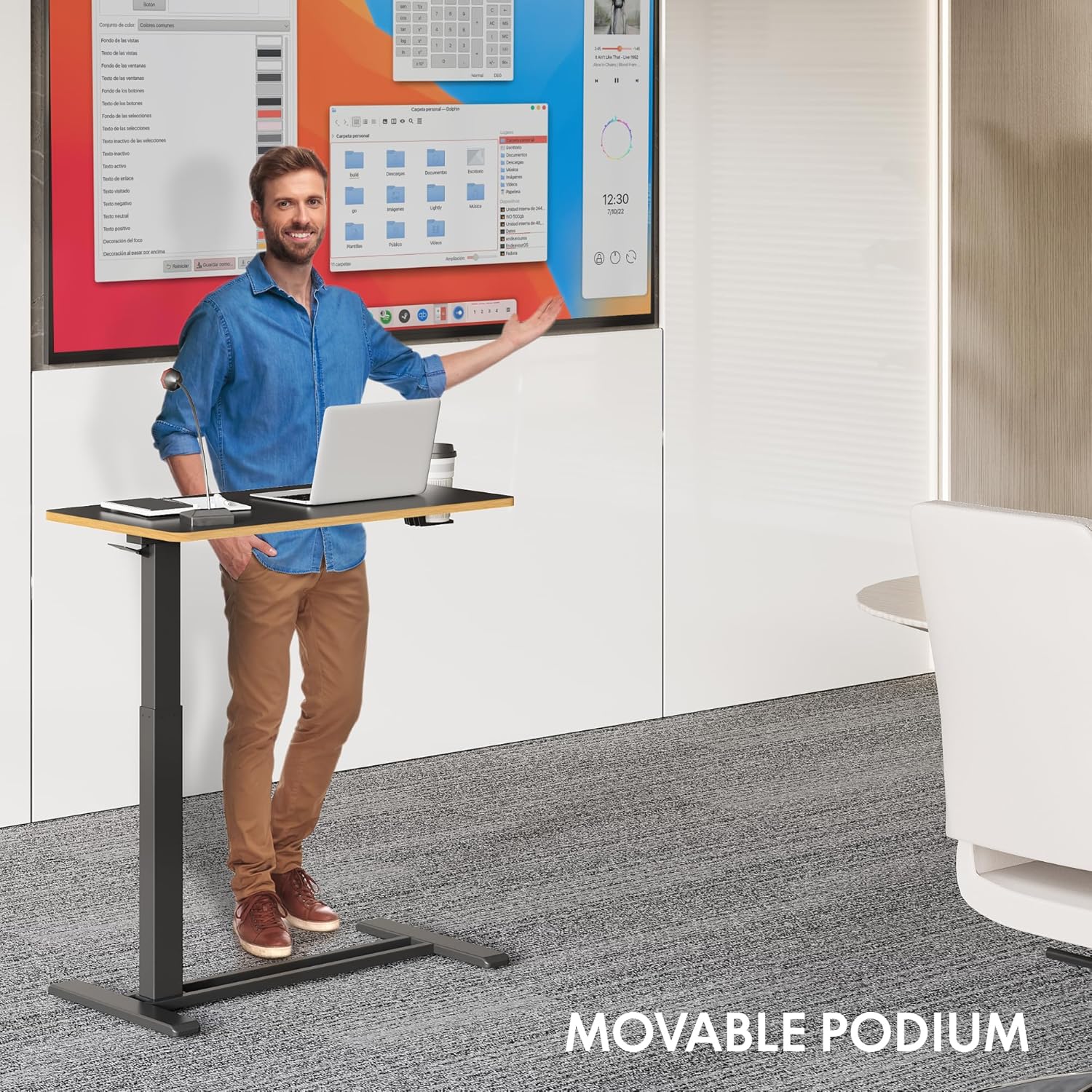 FLEXISPOT Mobile Standing Desk with Wheels Pneumatic Laptop Desk Rolling Computer Cart Movable Height Adjustable Small Sit Stand Desk Computer Workstations Home Use(31.5" W x 17.7" D, Black+Maple