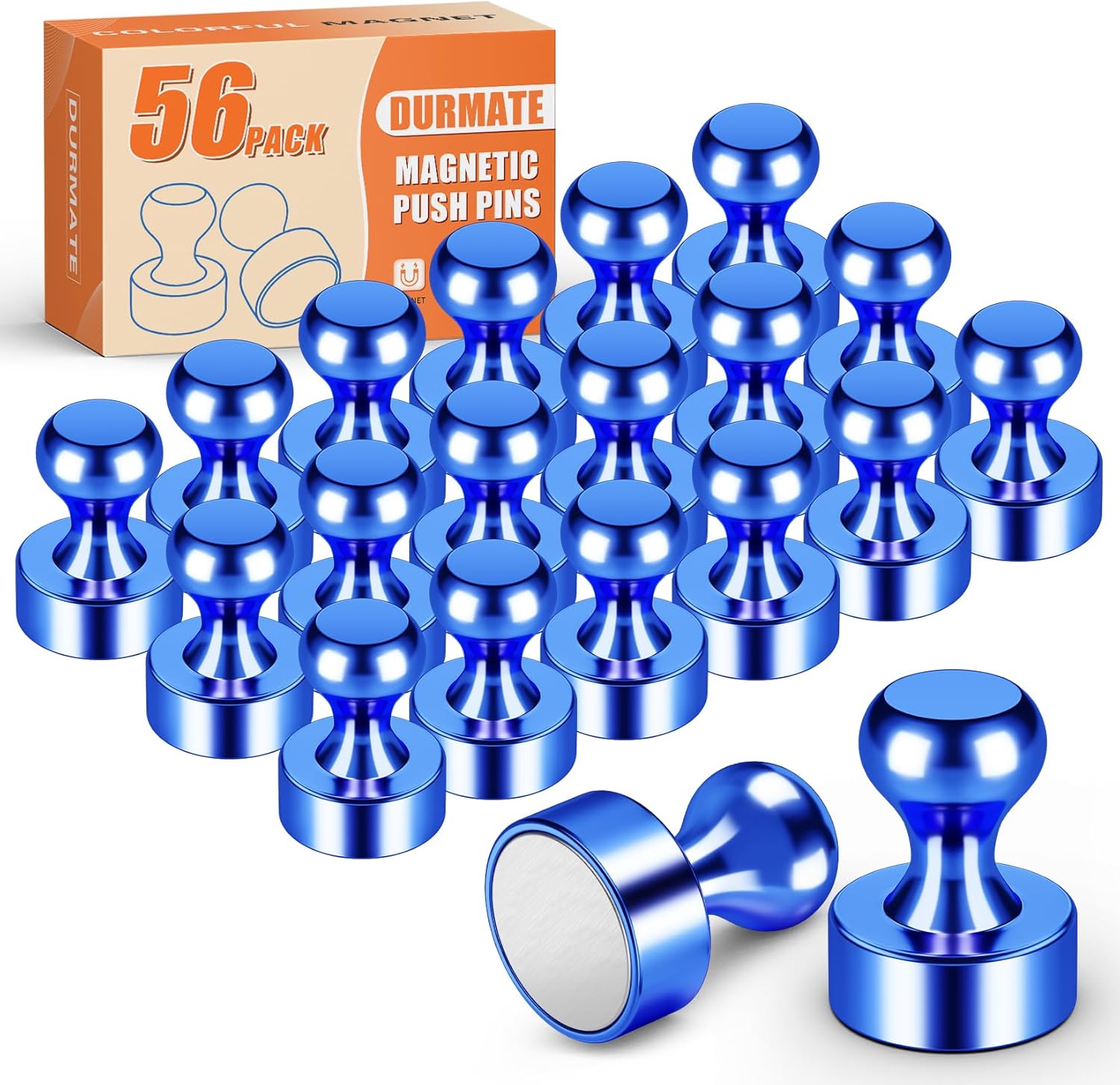 Circle Whiteboard Magnets for Fridge, Tiny Cute Refrigerator Magnets Strong, Magnetic Push Pins for Bulletin Board, Desk Accessories, Kitchen Decor, Crafts, 56 Pack, Blue Metal