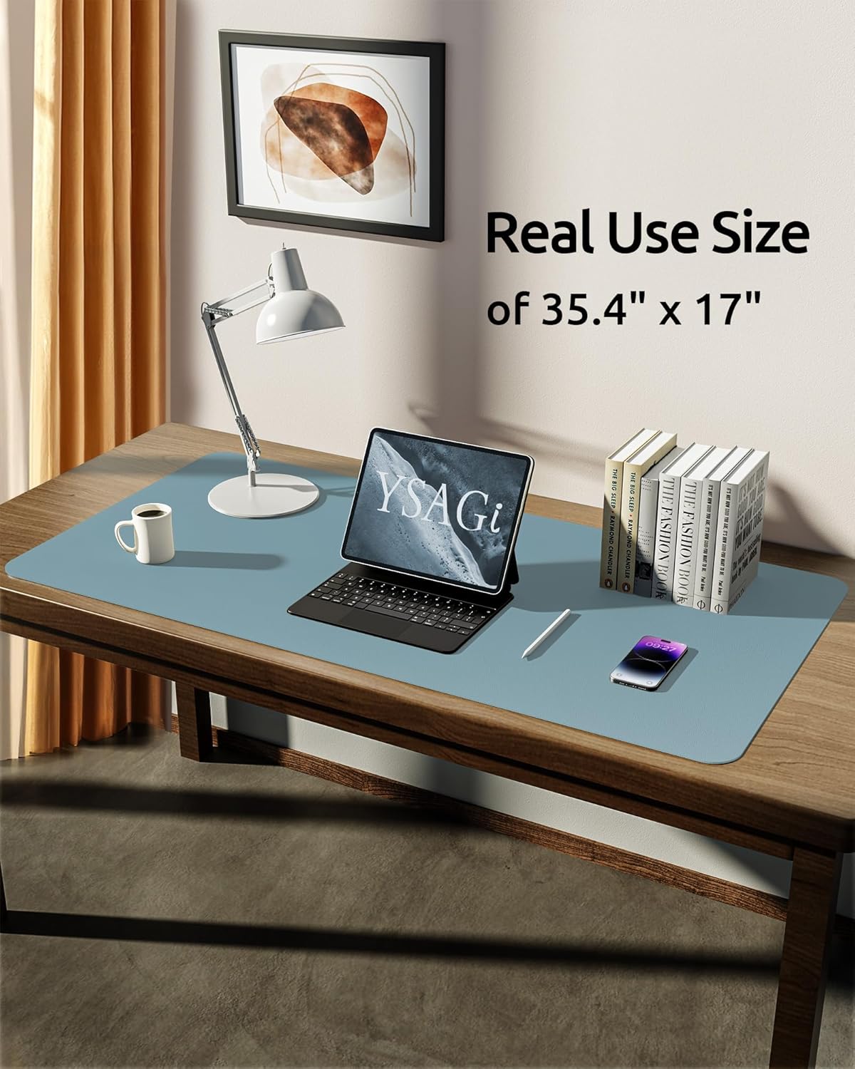 YSAGi Leather Desk Protector, Office Mat, Large Mouse Mat, Non-Slip PU Leather Blotter, Laptop Pad, Waterproof Writing Pad for Office and Home (Ice Blue, 35.4" x 17")