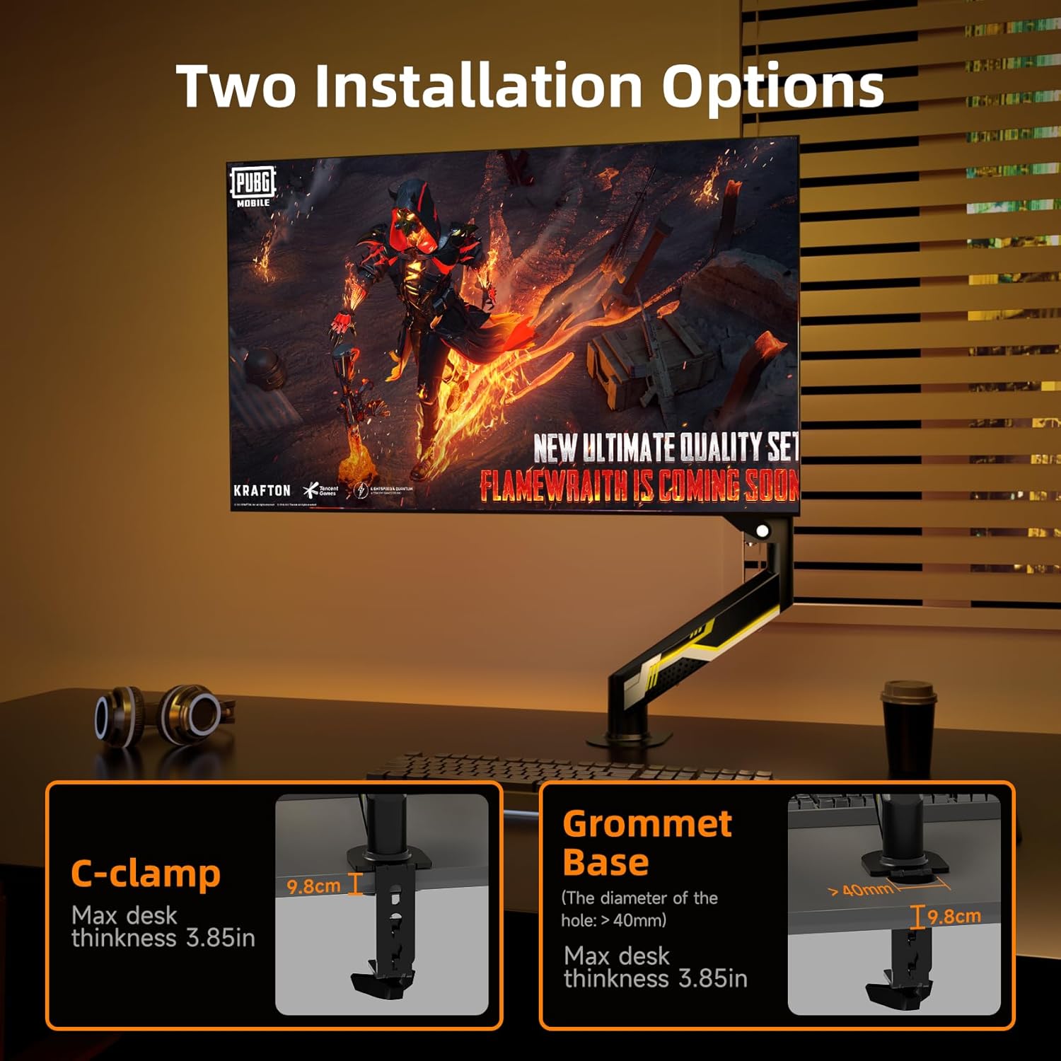 - Two install options - C-clamp and optional grommet base (fits desk up to 3.85" thickness) save your valuable desk space.