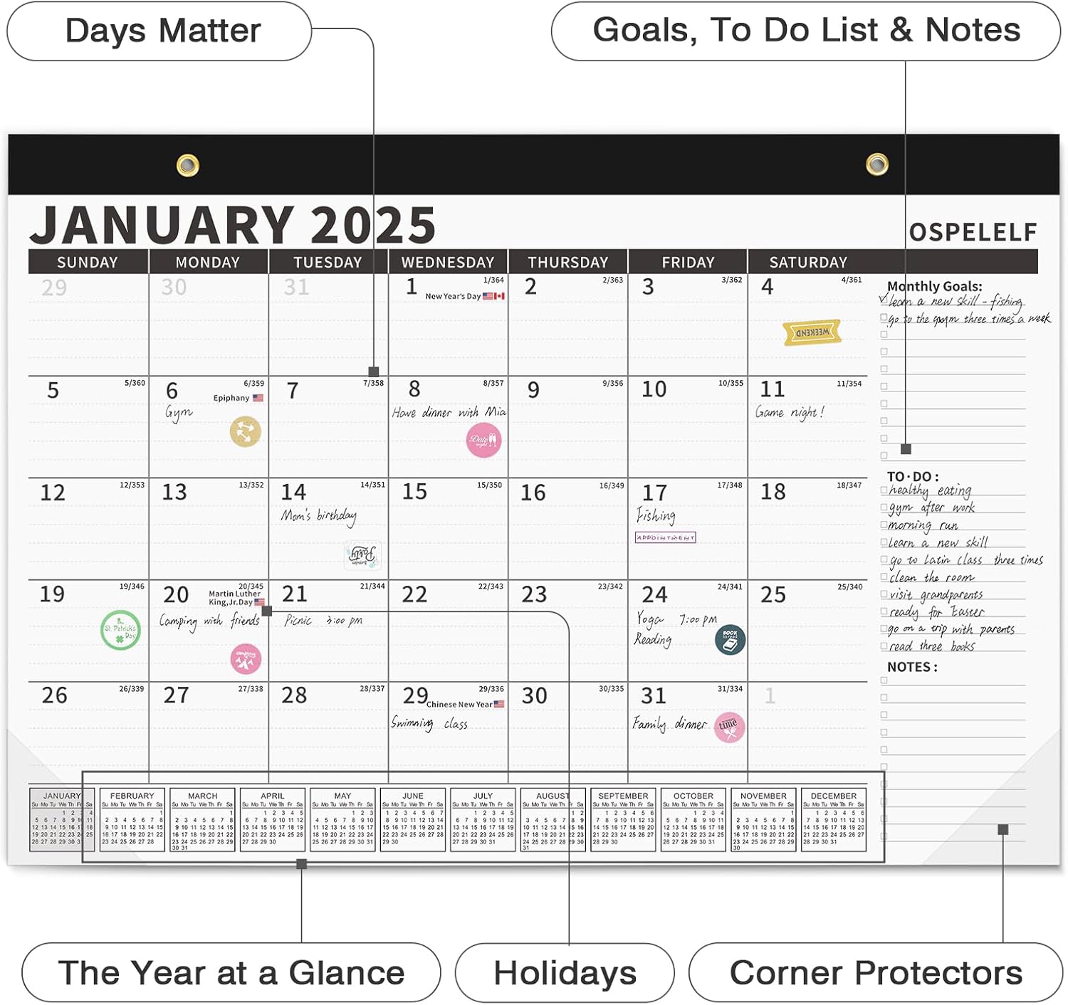 - Desk Calendar Size: 17 X 12 inches. The size of the calendar is large enough to make it easier for users to write schedules,goals and notes.