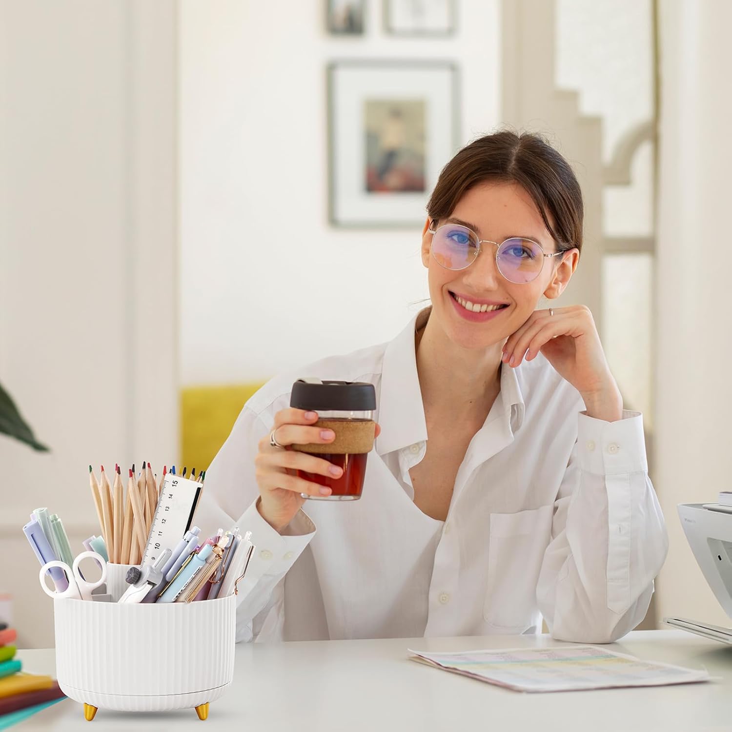 SKYDUE 360 Rotating Organizer - Dual-Purpose Pen & Pencil Holder with 5 Slots, Suitable for Office, School, or Home (White)