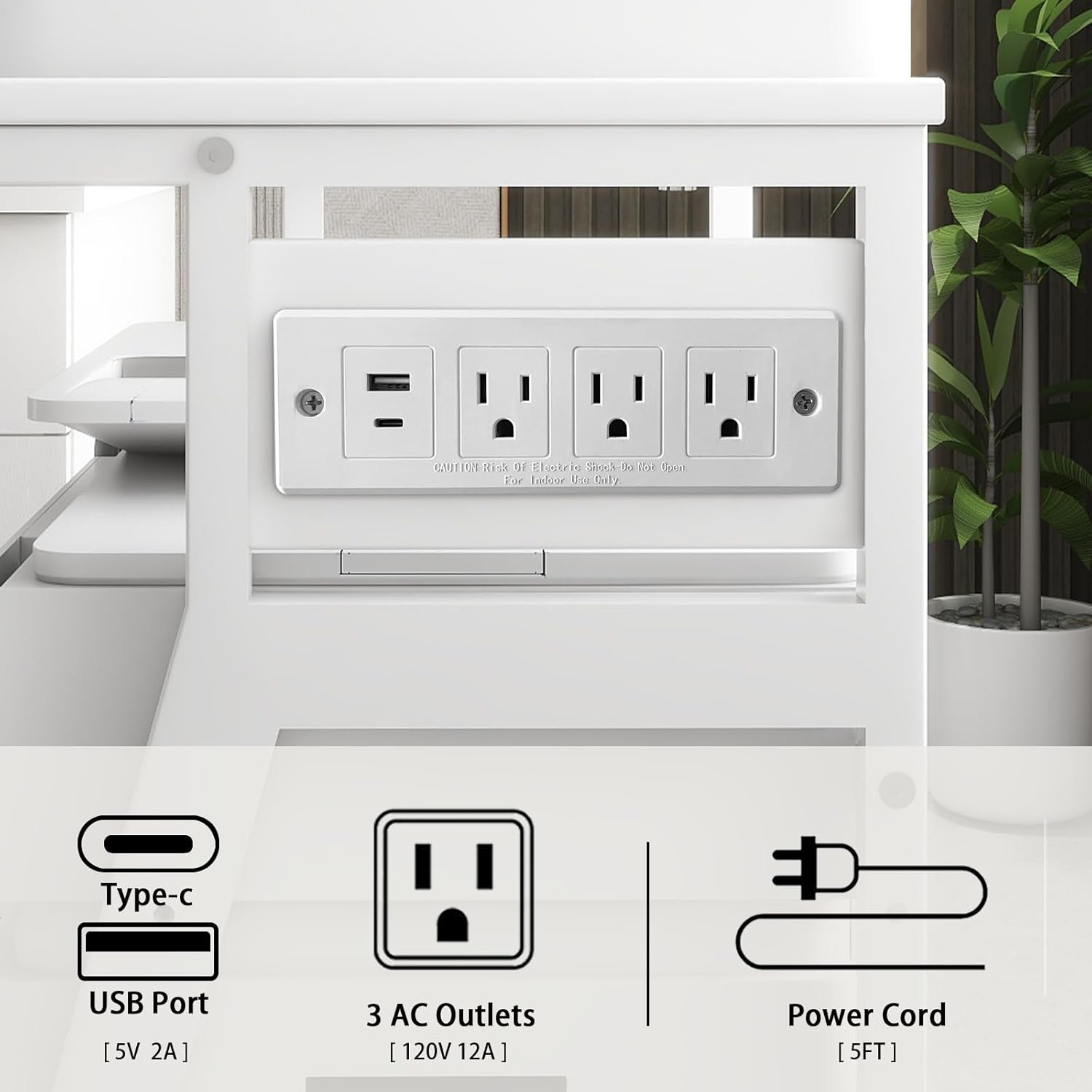 - 【Built-in Power Outlets】The printer table for home office is configured with charging station on the side panel. There are 3 AC outlets,1 Type-C and 1 USB Port that allows for simultaneous charging of the printer, computer host or shredder, and your laptop, phones. We provide 5ft length power cord for your flexible use of position.