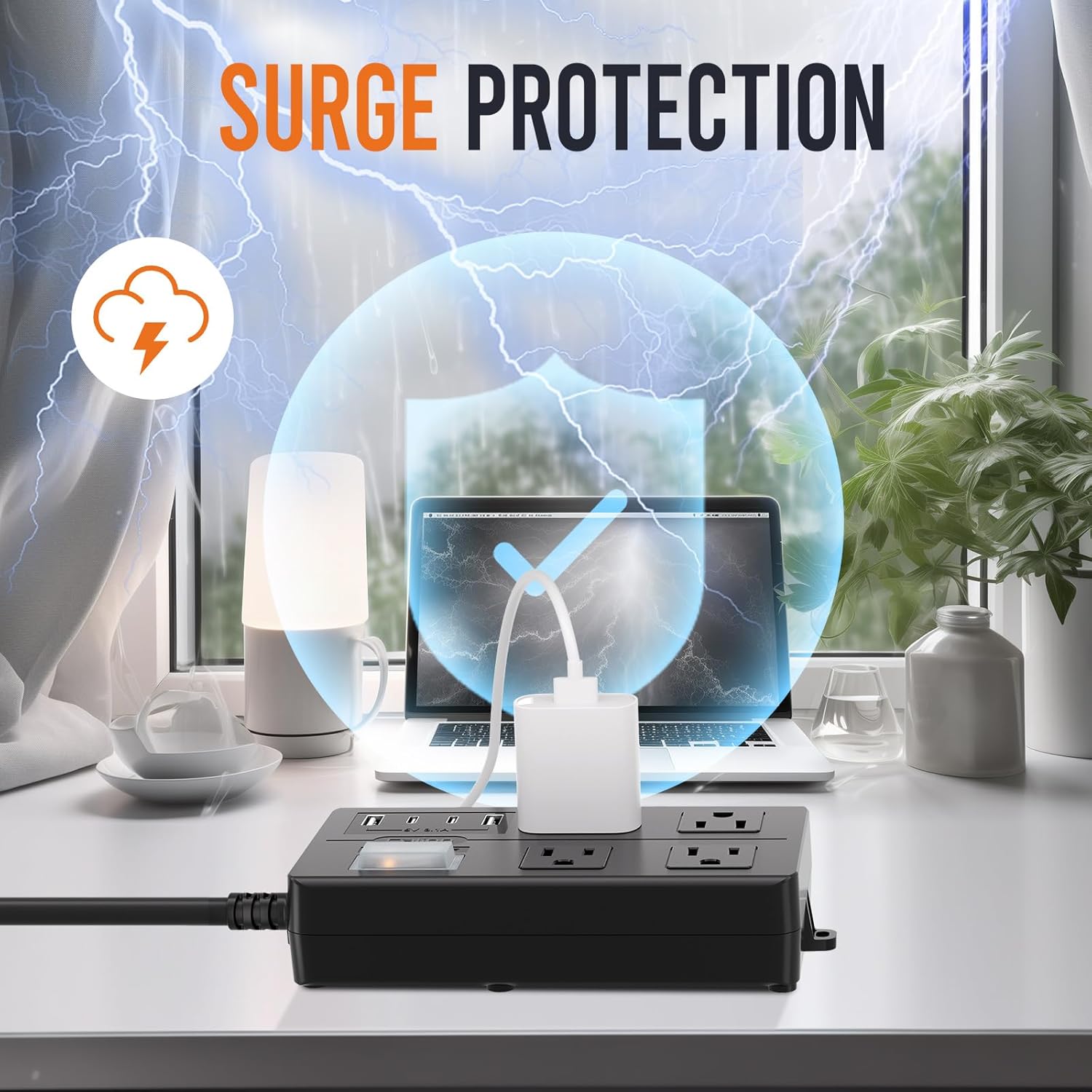 - Surge Protection:Certified by UL, FCC, and ETL, this electric strip features a 400 Joule energy rating and a 15 foot power extension cord to protect your devices and appliances; TV, printers, computer;It secures your electronic devices from overload, short circuit, power spikes, lightning strikes, or fluctuations.