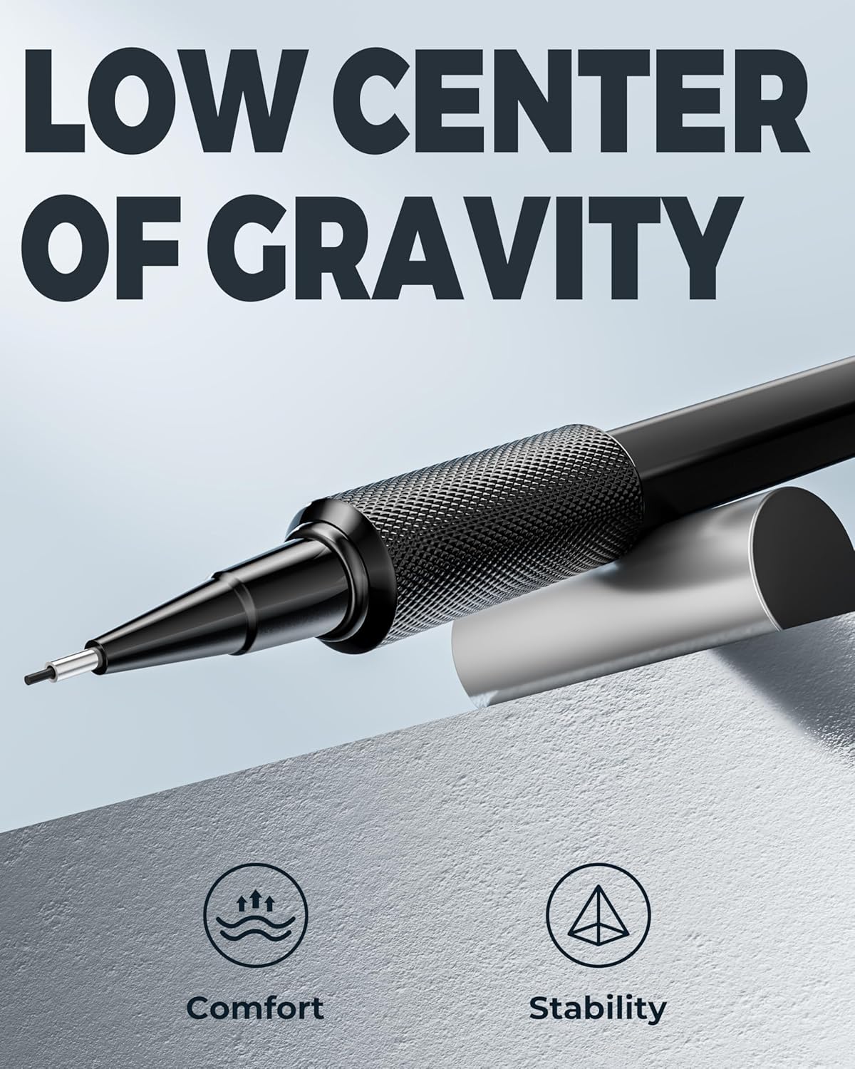 - Metal Threaded Anti-skidding grip: equipped with a metal threaded grip featuring an anti-skid texture, providing a secure and ergonomic hold for writing or drawing, minimizing user fatigue. rust, sweat, and water-resistant