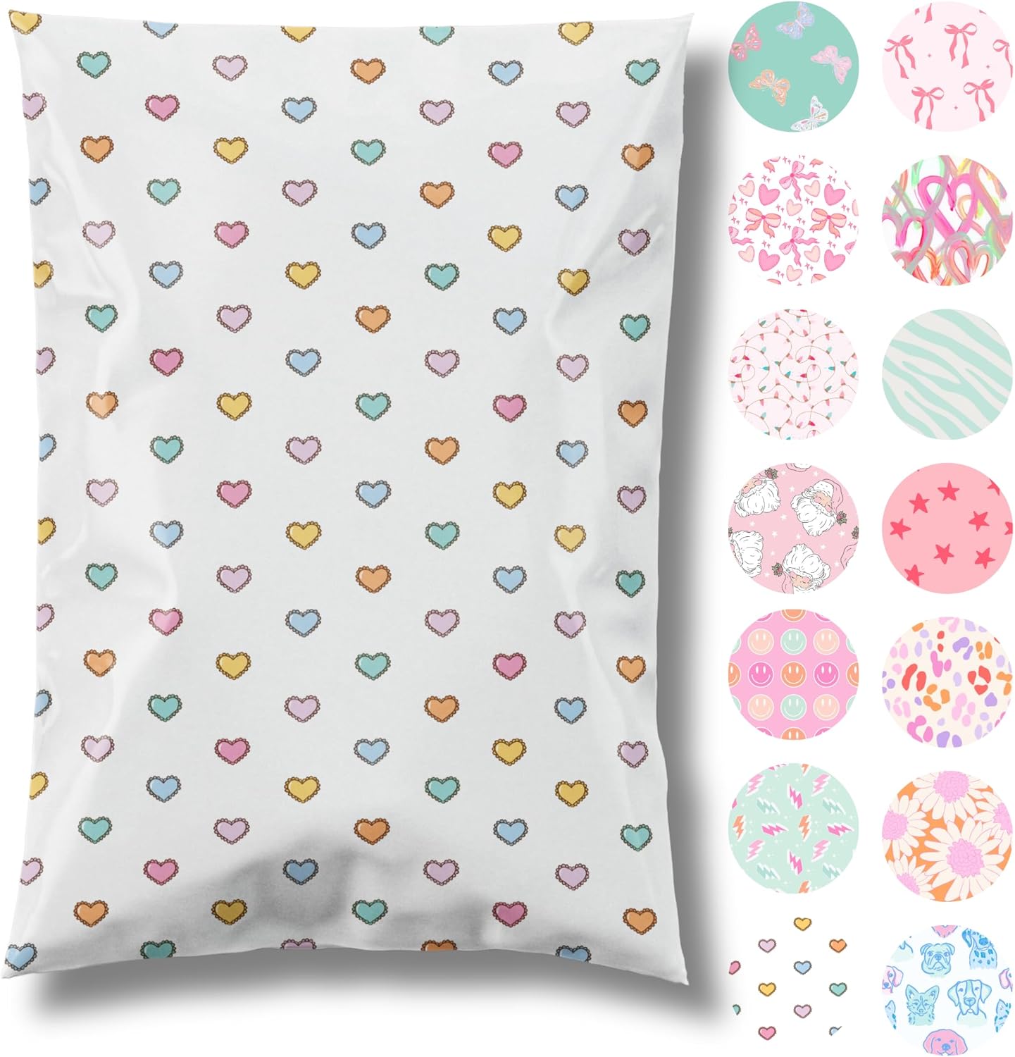 14.5x19 Designer Poly Mailer 100 Pack Heavy Duty Waterproof Self Seal Shipping Bags for Small Business Large Mailing Envelopes Bulk Tear Resistant Packaging Preppy Hearts