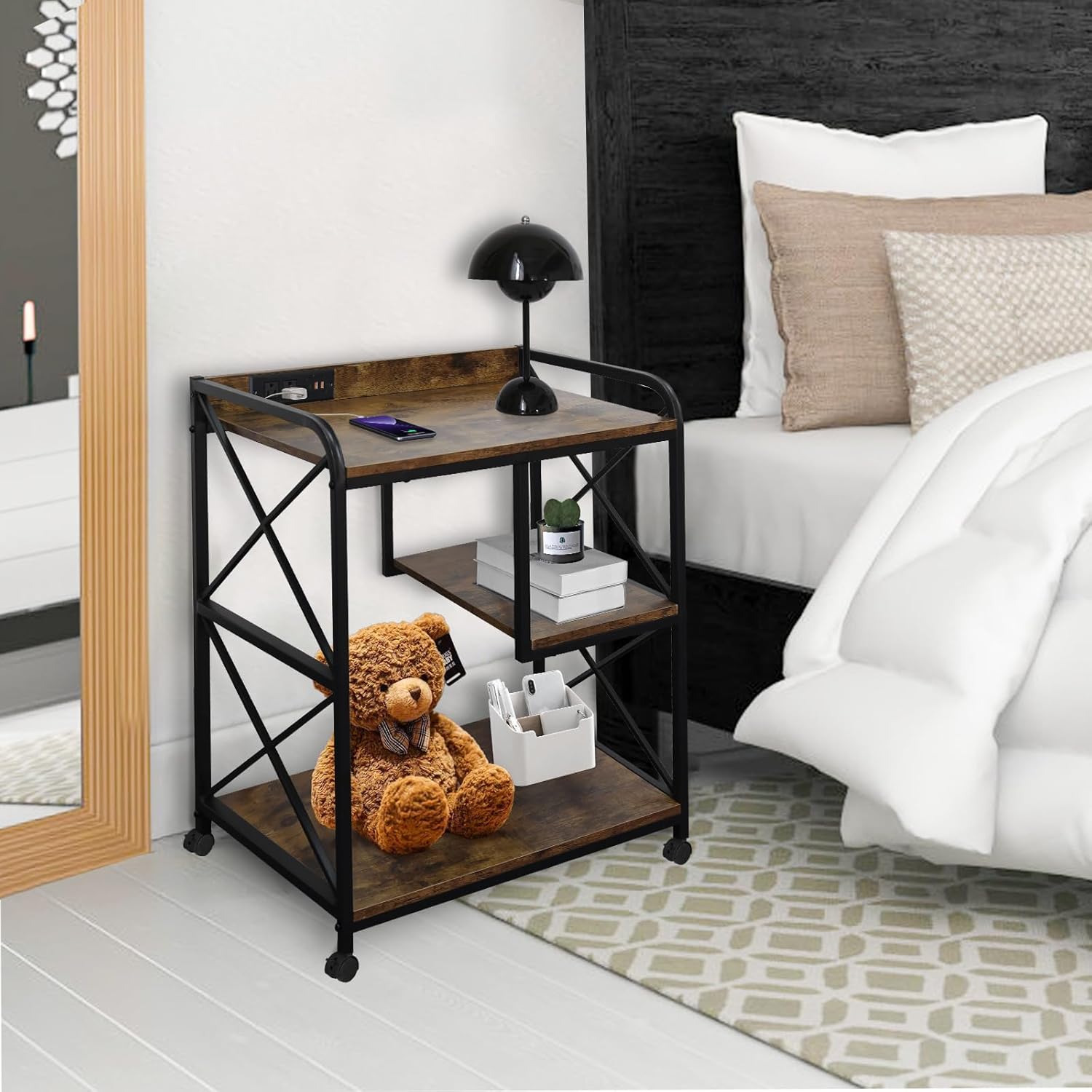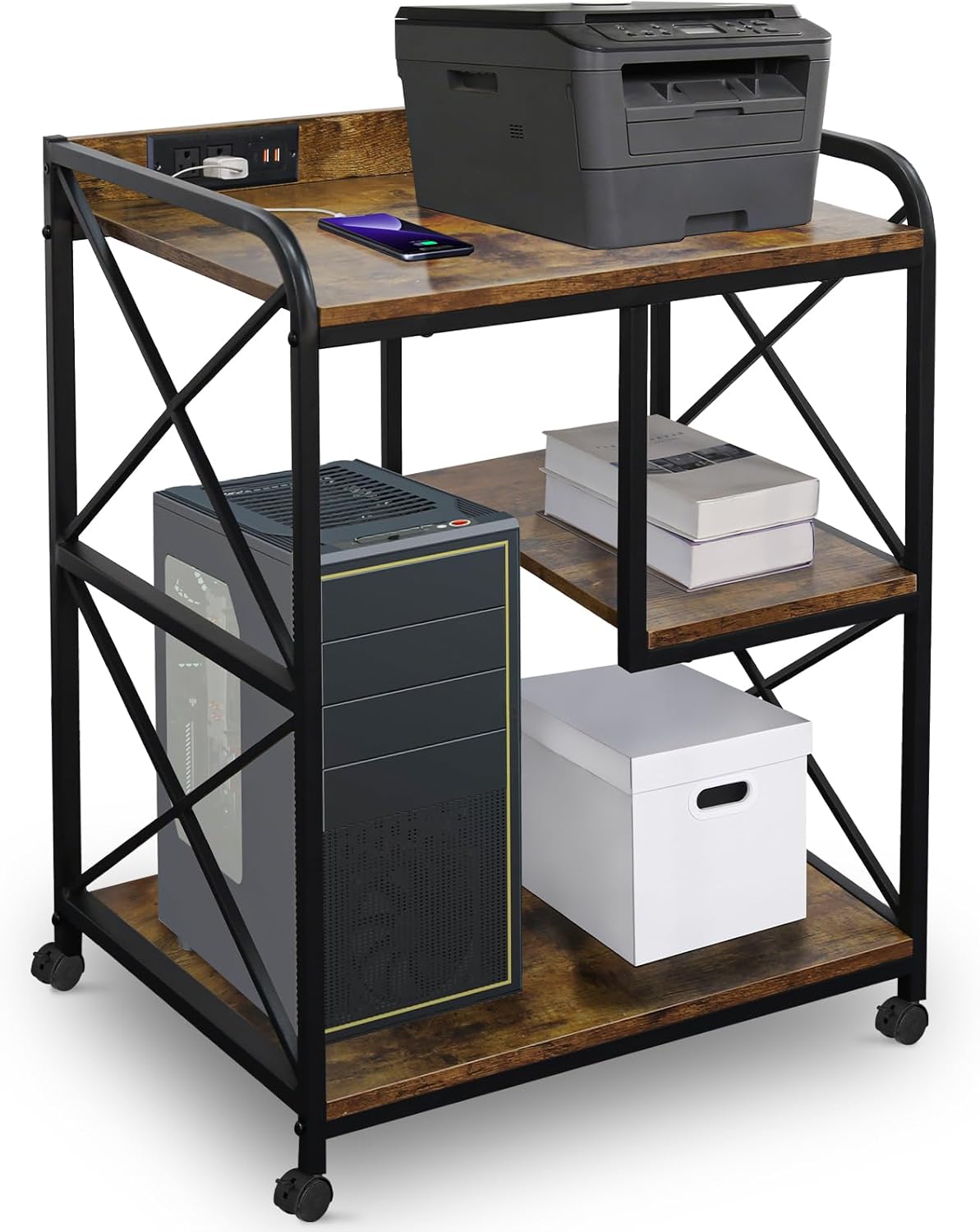 Printer Stand, Printer Table with Storage Shelf for Home Office, 23 x 18 Inch Large Home Printer Stand with Power Outlet USB Port, Printer Cart, PC Tower Stand, Vintage Brown