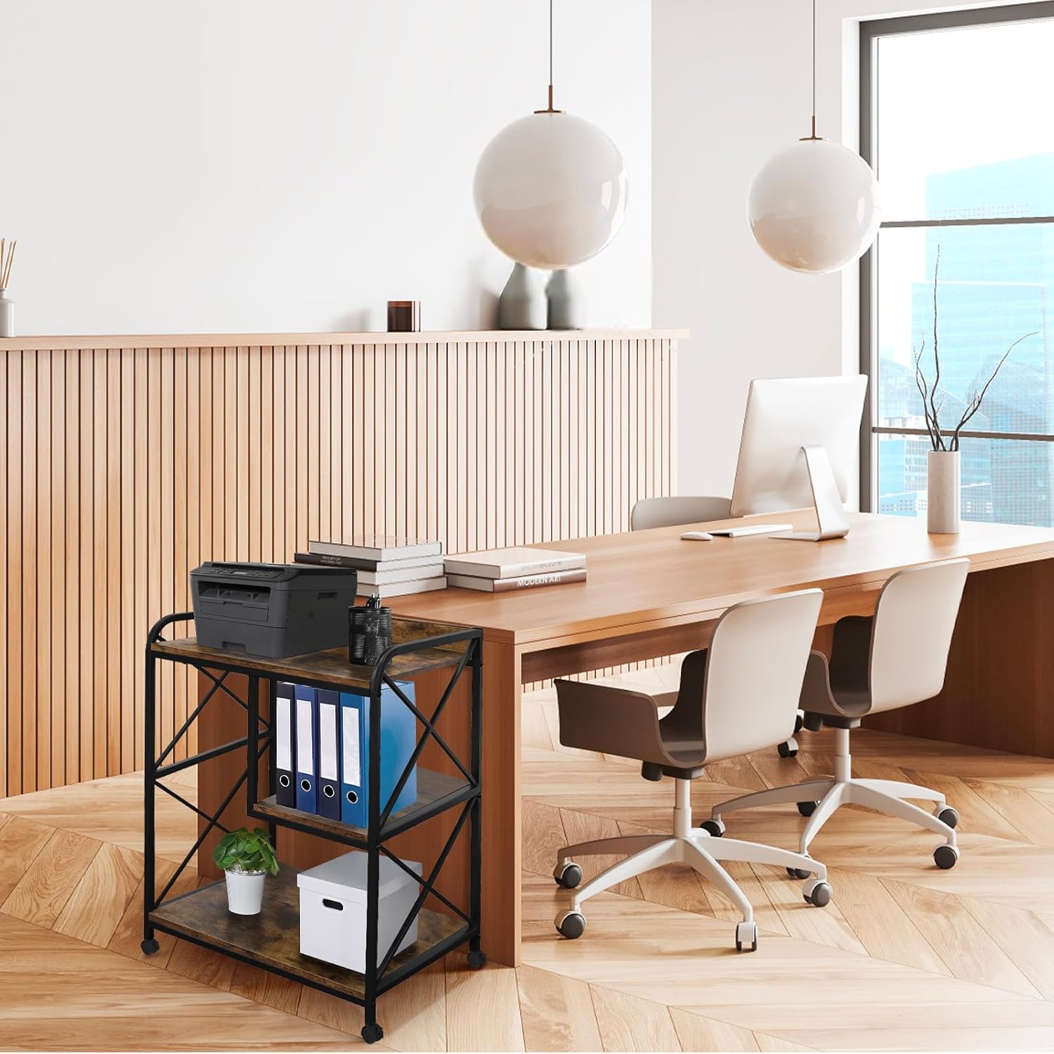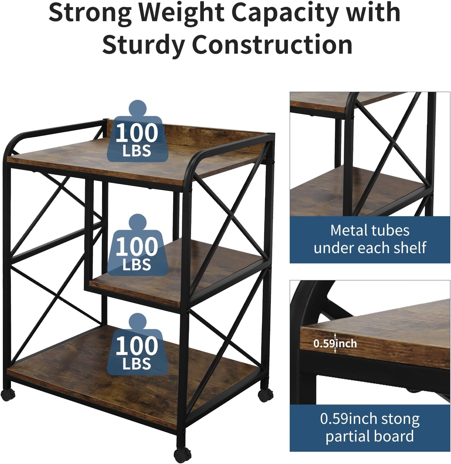 - 【Multipurpose Rolling Printer Cart】The printer stand includes rolling casters, 2 of the 4 wheels are lockable to keep the cart in position. So you can either move the stand around flexibly or keep the stand stationary with lockable wheels. This printer cart is not just for holding printers, but also serves as a file cabinet, office storage rack, paper shredder stand, microwave oven stand, kitchen baker's rack, and file rack organizer. Perfect for organizing your office or living space.