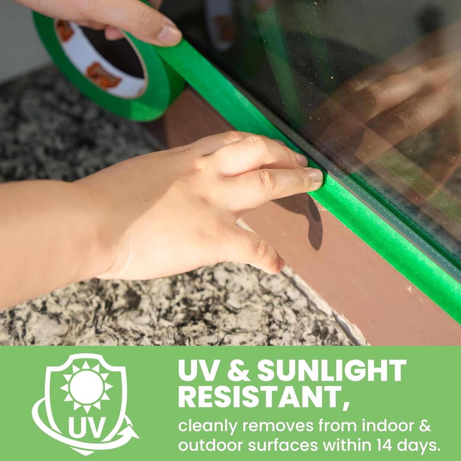 - INDOORS & OUTDOORS USE: Green Painting Tape resists UV rays, sunlight and moisture, so you can use it as an indoor or outdoor tape. It can be used on hot summer days and/or in direct sunlight. Easy to use, resists splintering, hand tearing and is writable.